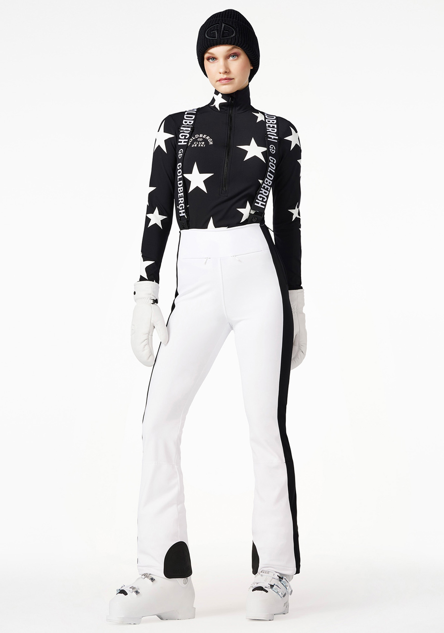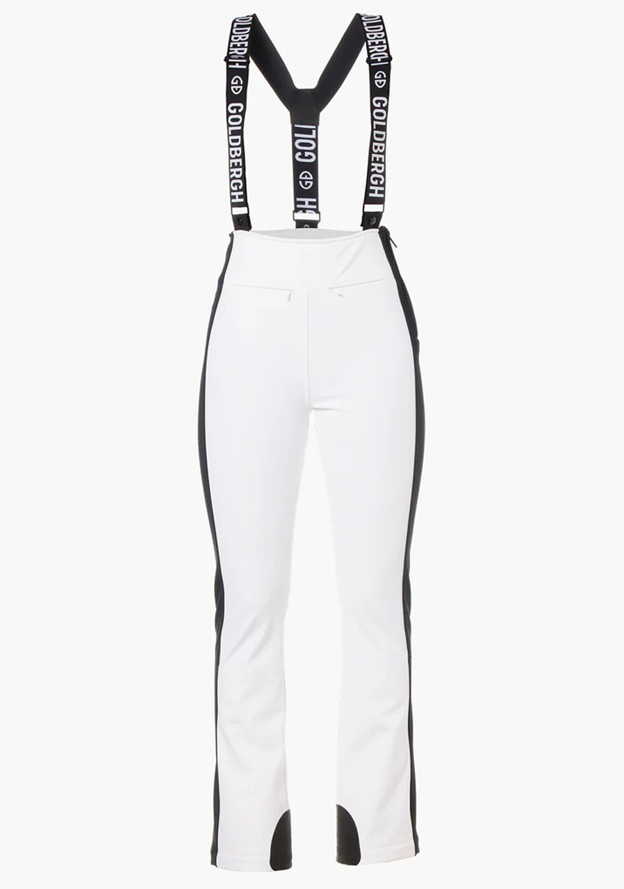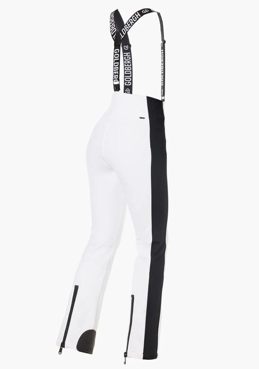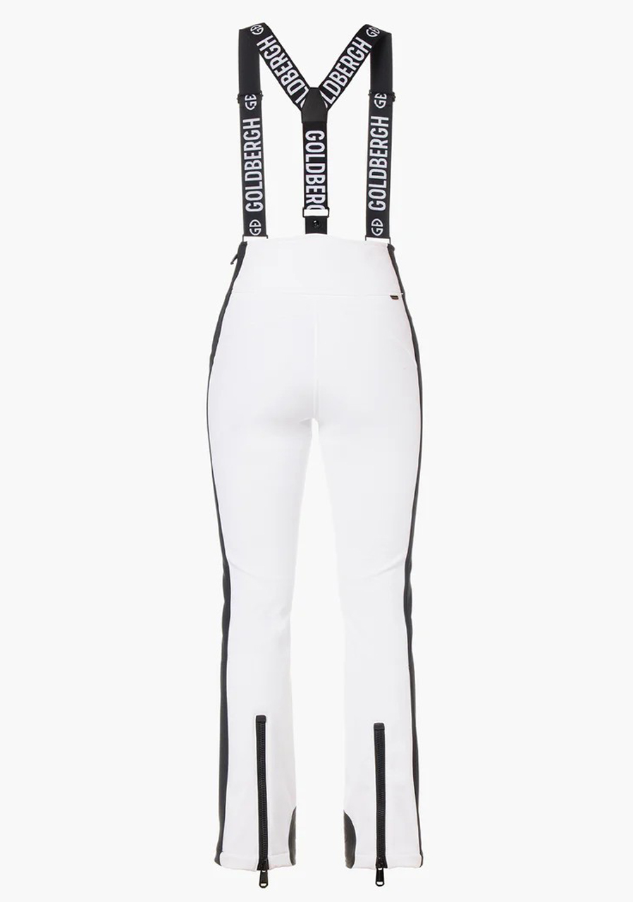 Goldbergh High End Ski Pants v bílé barvě jsou ideální volbou pro náročné lyžaře, kteří vyžadují funkčnost a styl. Tyto elegantní kalhoty jsou vyrobeny z vysoce kvalitní směsi polyamidu a elastanu, což zaručuje pružnost a pohodlí při pohybu. Mají vysoký vodní sloupec a prodyšnost, takže vás udrží v suchu i v náročných podmínkách. Kalhoty jsou vybaveny odnímatelnými elastickými šlemi, dvěma kapsami na zip a sněhovými manžetami ve spodní části, které zabraňují vniknutí sněhu. Zipy na zadní části nohavic umožňují snadné obutí přes lyžařské boty. Kalhoty jsou navrženy ve slim fit střihu tak, aby dokonale seděly. Tento model kombinuje sofistikovaný vzhled a špičkové technické parametry, což z něj dělá perfektní volbu pro luxusní lyžování.