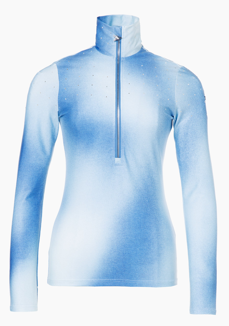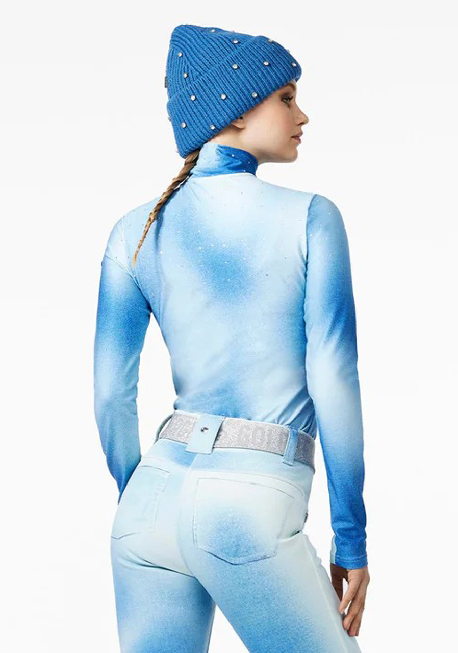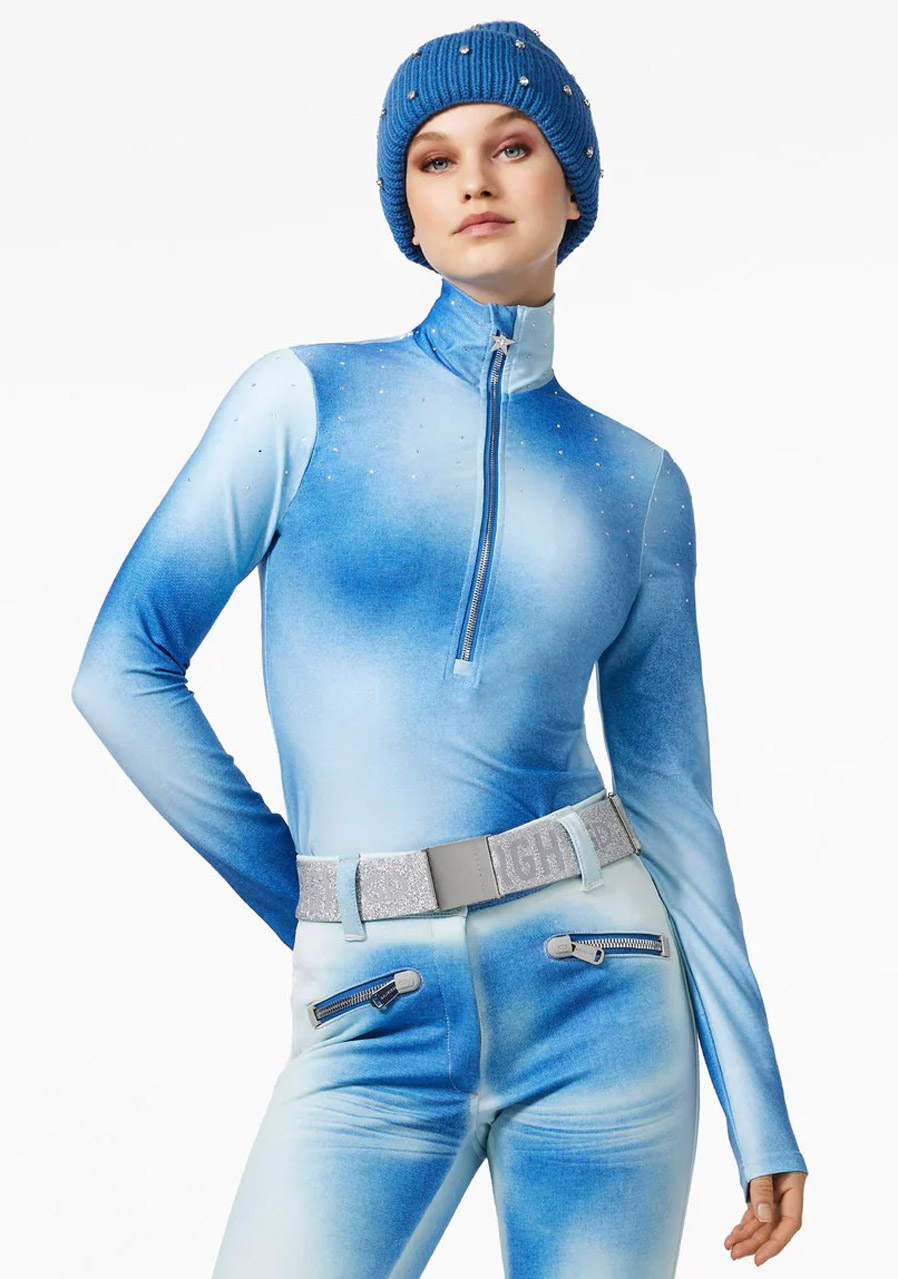 Goldbergh Jean Ski Pully Denim Print je stylový a funkční dámský lyžařský rolák, který kombinuje módní vzhled s výkonnostními vlastnostmi. Tento rolák je vyroben z elastického materiálu s technologií Powerstretch a dalšími pro odvod vlhkosti a rychlého schnutí, což zajišťuje maximální pohodlí při fyzické aktivitě. Design připomíná denim a je ozdoben detaily ze Swarovski krystalů, což mu dodává luxusní vzhled. Rolák má slim fit střih, dlouhé rukávy a půlzip s ozdobným taháčkem ve tvaru hvězdy. Jeho konstrukce zahrnuje prodyšný materiál s ochranou proti zápachu, ideální pro náročné podmínky na sjezdovkách. Tento produkt je perfektní volbou pro ženy, které hledají spojení elegance a funkčnosti.