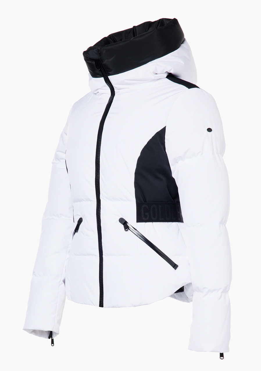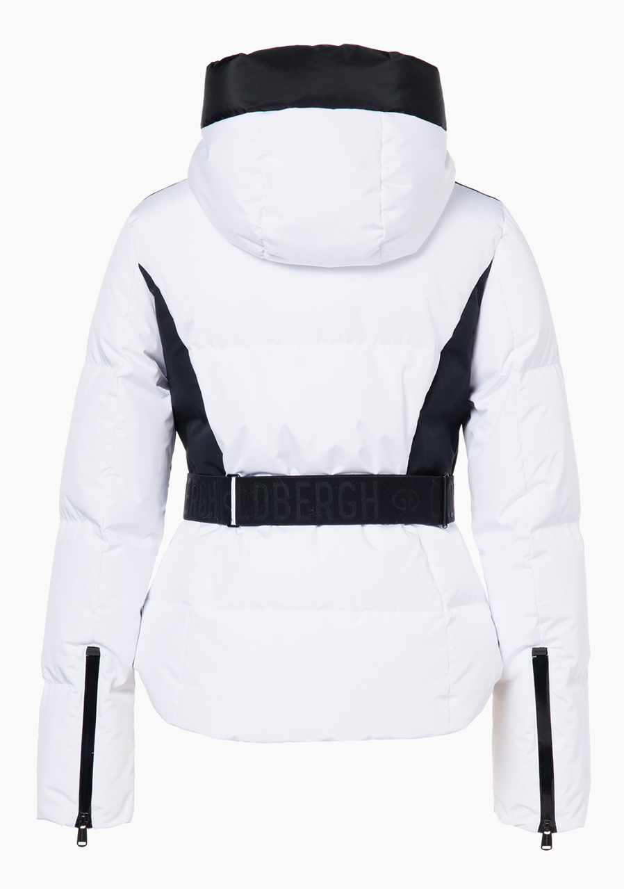 Dámská lyžařská bunda Goldbergh Lou v bílé barvě je skvělou volbou pro všechny zimní sporty a outdoorové aktivity. Tento model ve regular fit střihu je vyroben z recyklovaných materiálů a nabízí vysoký komfort díky použití RDS certifikovaných peří a technologii proti zápachu. Bunda disponuje kapucí, praktickými zipy na rukávech, odnímatelným sněhovým pásem, a několika kapsami (dvě vnější, dvě vnitřní) včetně kapsy na skipas na rukávu. Moderní prošívaný vzhled s elastickými manžetami v rukávech a elastickými bočními panely dodává bunde funkčnost a stylový designe. Pokud hledáte stylovou, funkční a ekologicky šetrnou bundu na lyže, Goldbergh Lou Ski Jacket je skvělou volbou!