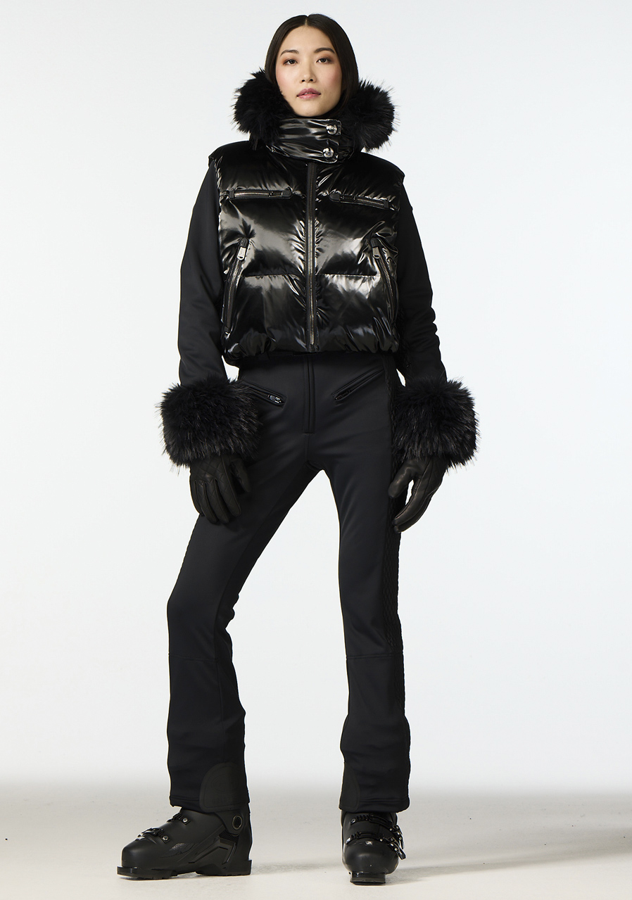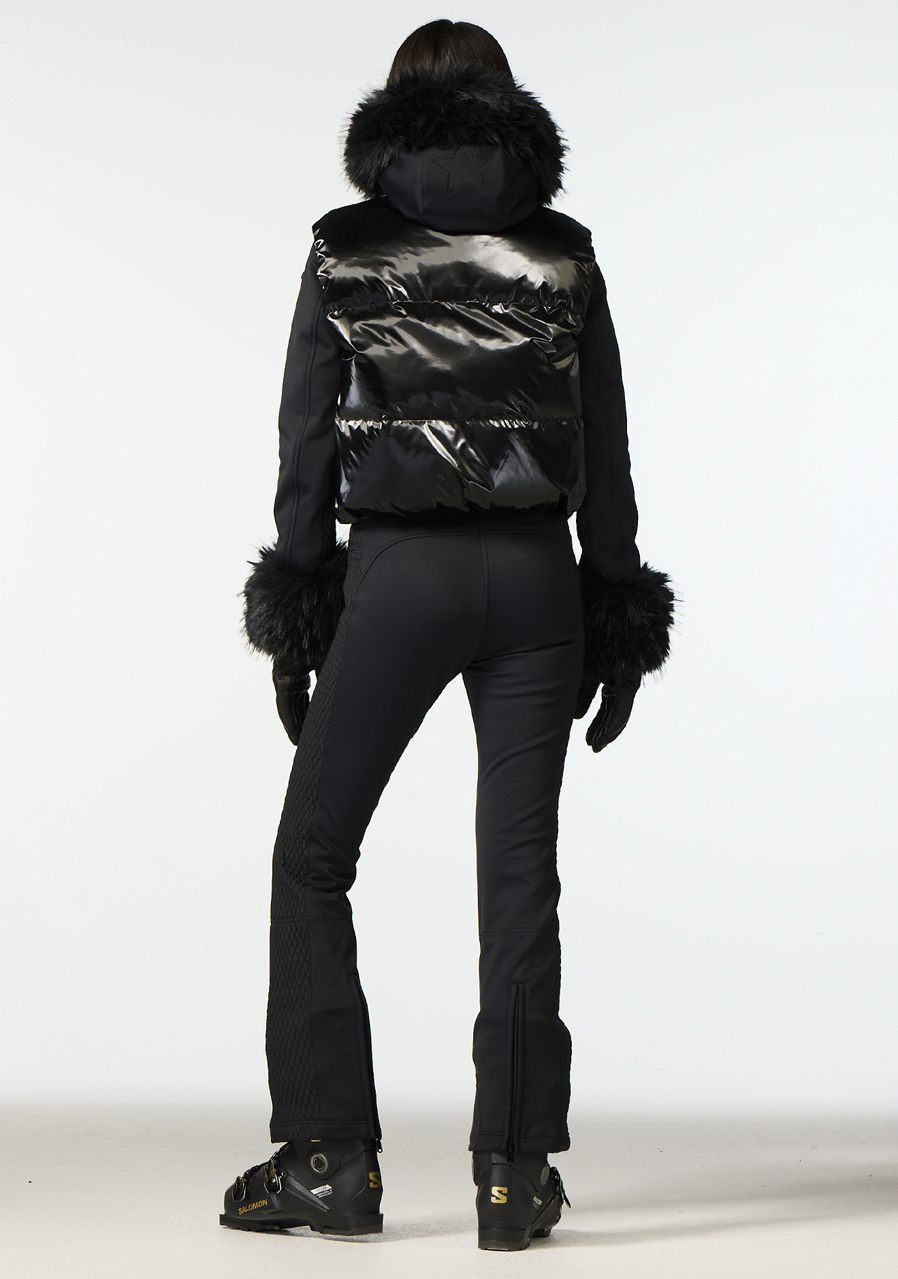 Tato dámská lyžařská vesta v pohodlném regular fit střihu je vyrobena z recyklované vnější tkaniny, což ji řadí mezi ekologicky šetrné kousky. Podšívka je částečně z recyklovaného materiálu s úpravou proti zápachu pro lepší komfort. Výplň tvoří prachové peří s certifikací RDS (Responsible Down Standard), které zaručuje teplo a lehkost. Vesta má dvě vnější a dvě vnitřní kapsy pro praktické uložení drobností. Odepínací sněhový pás zajistí ochranu proti pronikání sněhu. Střih odpovídá běžným velikostem, doporučujeme zvolit svoji standardní velikost.