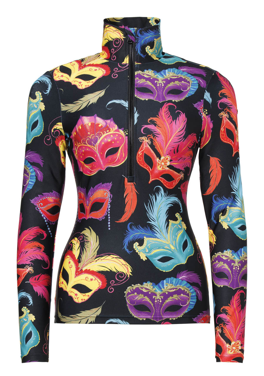 Toto slim fit triko vyniká originálním celoplošným potiskem Bella Maschera, který dodává sportovnímu outfitu módní a energický charakter. Powerstretch interlock materiál s funkčními vlastnostmi se postará o pohodlí, volnost pohybu a tepelný komfort. Úzký stojáček s prodlouženým ½ zipem podtrhuje sportovní eleganci, zatímco kovový štítek na rukávu zdůrazňuje prémiové zpracování. Díky rychleschnoucí úpravě, regulaci vlhkosti a anti-odor technologii je ideální volbou pro aktivní zimní dny.