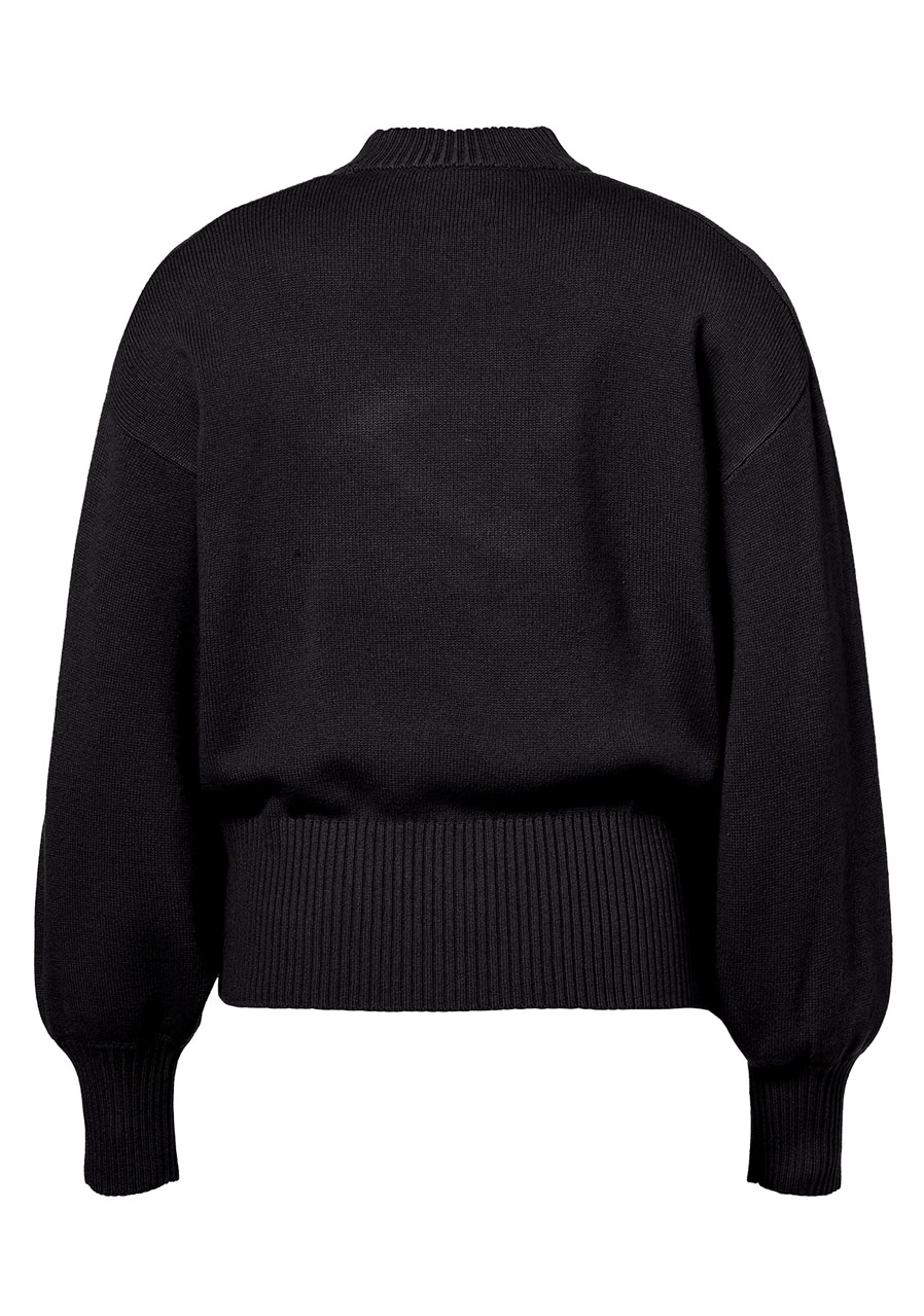 Tento volnější svetr z kašmírové směsi nabízí příjemný a měkký úplet s decentními žebrovanými detaily na lemu, stojáčku a manžetách. Balónové rukávy dodávají modelu módní nádech a zároveň zachovávají pohodlí při nošení. Díky tkané značkové etiketě na boku je svetr elegantním doplňkem pro každodenní i volnočasové outfity.