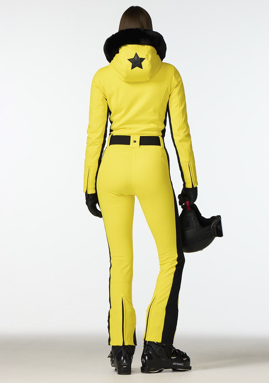 Tato slim fit kombinéza kombinuje moderní design s funkčními vlastnostmi. Výplň z certifikovaného kachního peří (RDS) a Primaloft® zajišťuje výbornou tepelnou izolaci při zachování lehkosti. Pružná podšívka s antibakteriální úpravou udržuje svěžest během celého dne. Kombinéza je vybavena čtyřmi kapsami, včetně kapsy na skipas, dvěma elastickými pásky, zipy na rukávech i zadním lemu a sněhovým lemem na spodní části. Kontrastní části na bocích z vrchního materiálu podtrhují elegantní vzhled. Pevná kapuce je ozdobena aplikací hvězdy z umělé kůže. Tento model je také dostupný ve variantě s kožešinovým lemem pod kódem GB016-89/91-254.