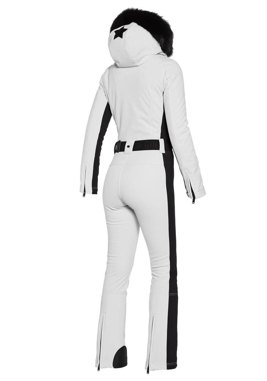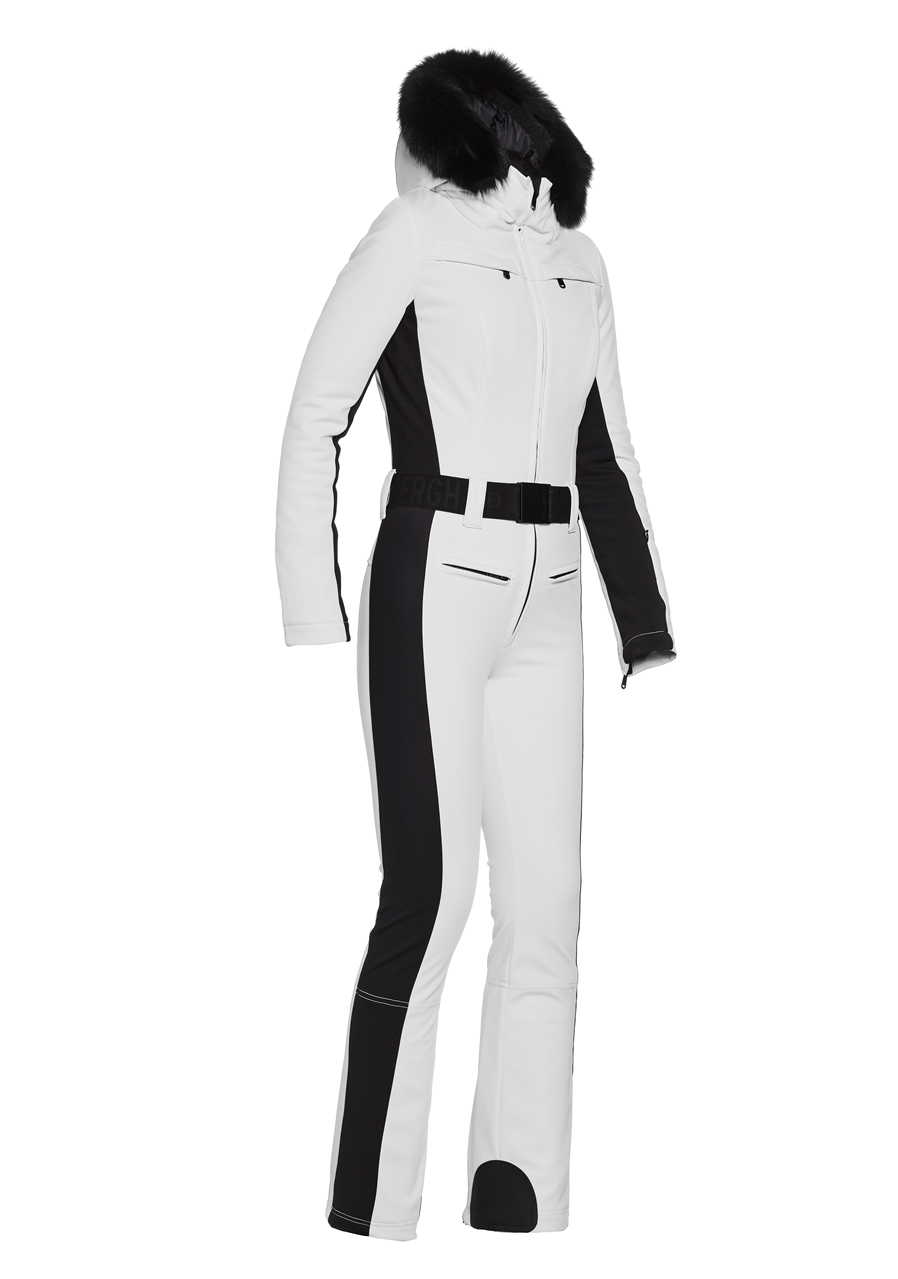 Tato slim fit kombinéza kombinuje moderní design s funkčními vlastnostmi. Výplň z certifikovaného kachního peří (RDS) a Primaloft® zajišťuje výbornou tepelnou izolaci při zachování lehkosti. Pružná podšívka s antibakteriální úpravou udržuje svěžest během celého dne. Kombinéza je vybavena čtyřmi kapsami, včetně kapsy na skipas, dvěma elastickými pásky, zipy na rukávech i zadním lemu a sněhovým lemem na spodní části. Kontrastní části na bocích z vrchního materiálu podtrhují elegantní vzhled. Pevná kapuce je ozdobena aplikací hvězdy z umělé kůže. Tento model je také dostupný ve variantě s kožešinovým lemem pod kódem GB016-89/91-254.