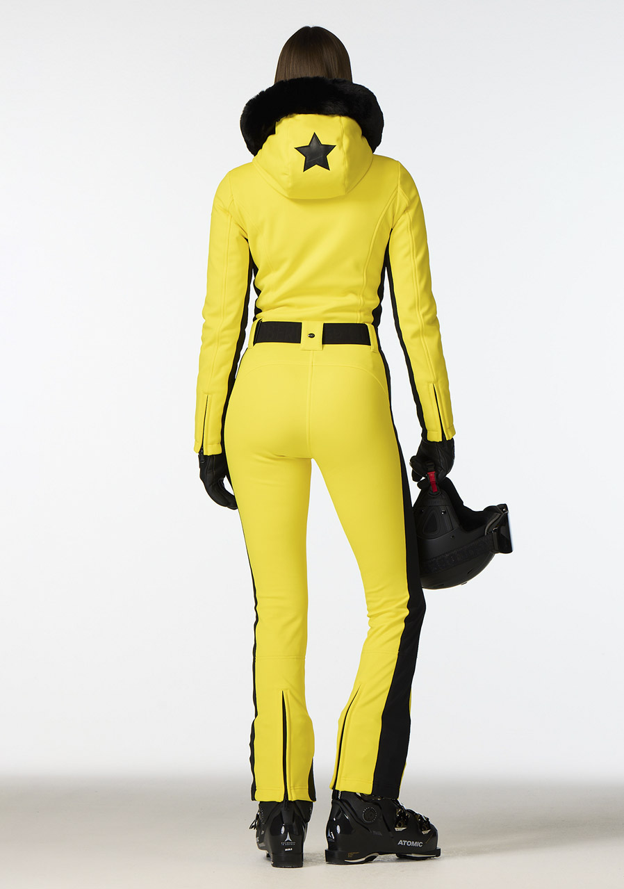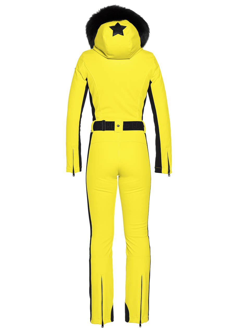 Tato slim fit kombinéza nabízí výjimečný komfort a tepelnou izolaci díky spojení certifikovaného kachního peří (RDS) a syntetické výplně Primaloft®. Pružná podšívka s antibakteriální úpravou udržuje svěžest a pohodlí během celého dne. Praktické čtyři kapsy, včetně kapsy na skipas, elastické pásky, zipy na rukávech i zadním lemu a sněhový lem na spodním okraji zajišťují funkčnost i styl. Kontrastní části na bočních švech z vrchního materiálu doplňují moderní vzhled, zatímco pevná kapuce je ozdobena aplikací hvězdy z umělé kůže. Model je dostupný také ve variantě bez kožešinového lemu pod kódem GB016-88/90-254.