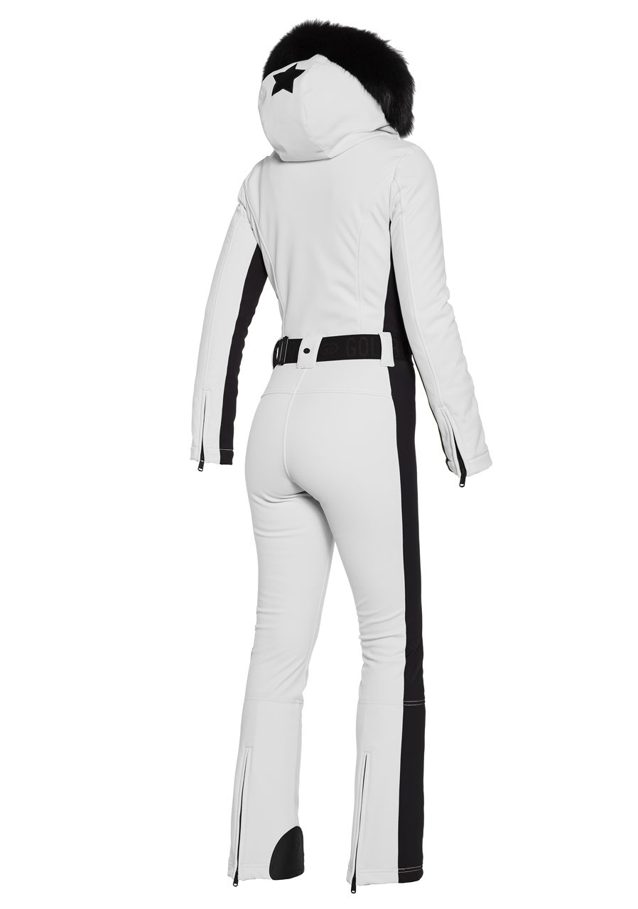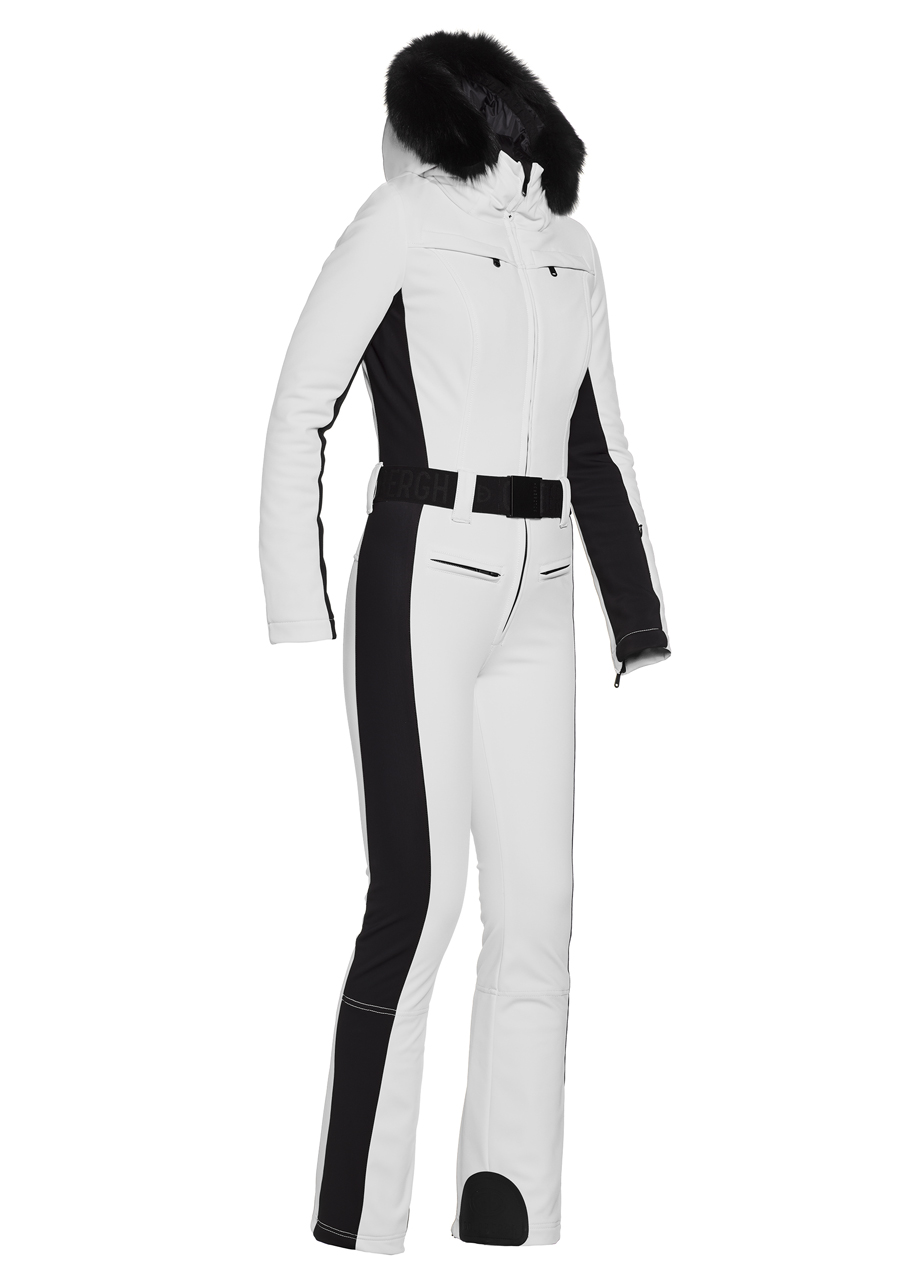 Tato slim fit kombinéza nabízí výjimečný komfort a tepelnou izolaci díky spojení certifikovaného kachního peří (RDS) a syntetické výplně Primaloft®. Pružná podšívka s antibakteriální úpravou udržuje svěžest a pohodlí během celého dne. Praktické čtyři kapsy, včetně kapsy na skipas, elastické pásky, zipy na rukávech i zadním lemu a sněhový lem na spodním okraji zajišťují funkčnost i styl. Kontrastní části na bočních švech z vrchního materiálu doplňují moderní vzhled, zatímco pevná kapuce je ozdobena aplikací hvězdy z umělé kůže. Model je dostupný také ve variantě bez kožešinového lemu pod kódem GB016-88/90-254.