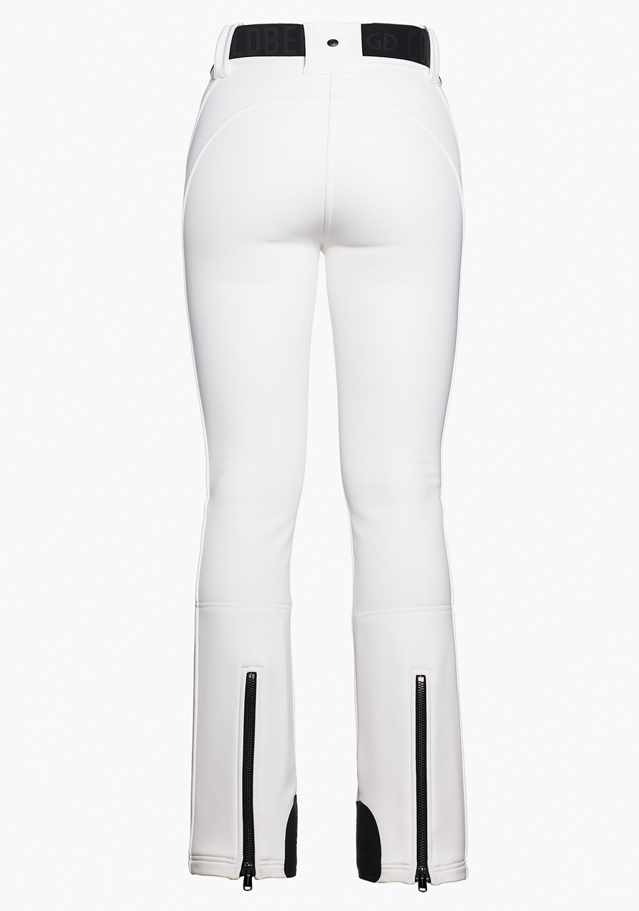 Tyto dámské kalhoty jsou vyrobeny z 3vrstvého softshellu s 4směrnou strečovou tkaninou WB400 od značky Schoeller, která zaručuje maximální volnost pohybu. Vnitřní strana je podšitá bonded fleecem pro extra teplo a komfort. Kalhoty jsou voděodpudivé, větruodolné a prodyšné, což vám poskytne spolehlivou ochranu i při náročném sportování. Součástí je také samostatný pásek a zipy na zadní straně lemu nohavic pro snadné oblékaní. Sněhové návleky uvnitř spodní části kalhot zabrání pronikání sněhu. Tento model je k dispozici i v delší variantě GB001-71-254, která je o 4 cm delší. Kalhoty mají standardní velikostní střih, doporučujeme zvolit svou běžnou velikost.
