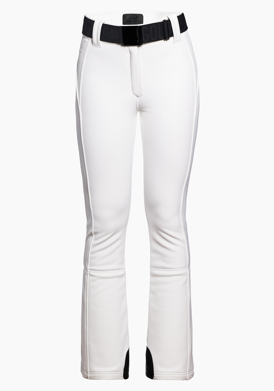Lyžařské kalhoty Goldbergh Pippa Ski Pants v bílé barvě jsou ideální kalhoty pro zimní sporty, jako je sjezdové lyžování nebo snowboarding. Vnější materiál (3 vrstvý softshell, WB400 materiál od Schoeller) s vodě a větruodpudivou úpravou poskytuje kalhotám výbornou pružnost a vám volnost pohybu. Vnitřní materiál tvoří 100% polyamid s fleecovou podšívkou pro větší teplo a pohodlí. Kalhoty mají slim fit střih a jsou vybaveny sněhovými manžetami a zipy na zadní straně nohavic. Součástí je také odnímatelný pásek, který přidává na univerzálnosti. Tento model je ideální volbou pro všechny z vás, co hledají funkčnost a styl v jednom.
