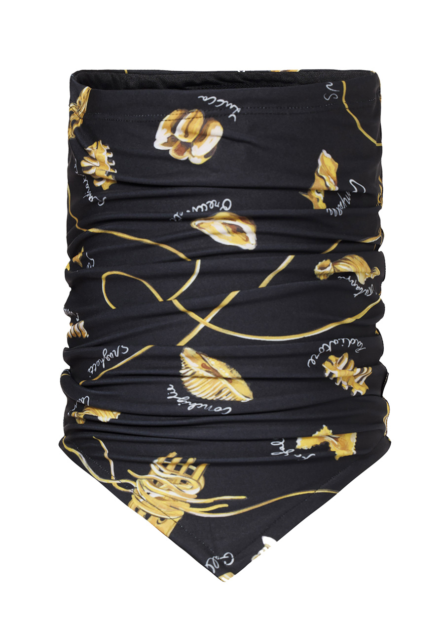 Elegantní nákrčník s potiskem La Pasta Dorata kombinuje moderní design s funkčností pro chladné dny. Powerstretch materiál zajišťuje pohodlí a volnost pohybu, měkká jersey podšívka poskytuje příjemný pocit při nošení. Funkční vlastnosti jako rychleschnoucí efekt, odvod vlhkosti a anti-odor úprava zajišťují praktické využití při zimních sportech i volnočasových aktivitách.