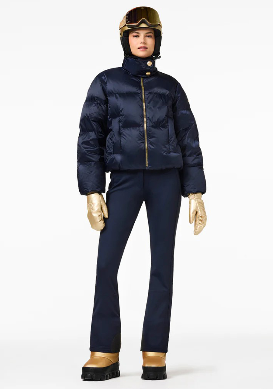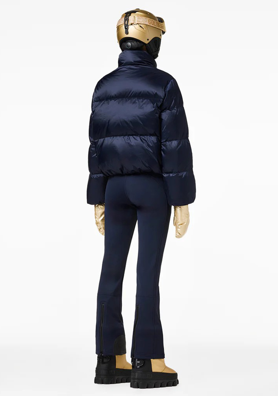 Lyžařská bunda Goldbergh Queenie ve francouzské modři je stylový a funkční model určený pro aktivní ženy, které chtějí spojit špičkový výkon s elegantním vzhledem. Tento prošívaný péřový kabát s rafinovaným límcem poskytuje optimální teplo a pohodlí jak na svahu, tak i mimo něj.Vnější materiál je vyroben ze 100% recyklovaného polyamidu, což zajišťuje odolnost a zároveň šetrnost k životnímu prostředí. S vodním sloupcem 10 000 mm a prodyšností 10 000 g/m²/24 h (dle standardu JIS) nabízí spolehlivou ochranu proti sněhu a větru. Částečně recyklovaná podšívka má úpravu proti zápachu a výplň z husího peří (90/10, certifikace RDS) garantuje špičkovou tepelnou izolaci.Praktické detaily zahrnují dvě vnější kapsy, dvě vnitřní kapsy a kapsu na rukávu na skipas. Odnímatelný sněhový pás a pletené manžety uvnitř rukávů zvyšují komfort i funkčnost.