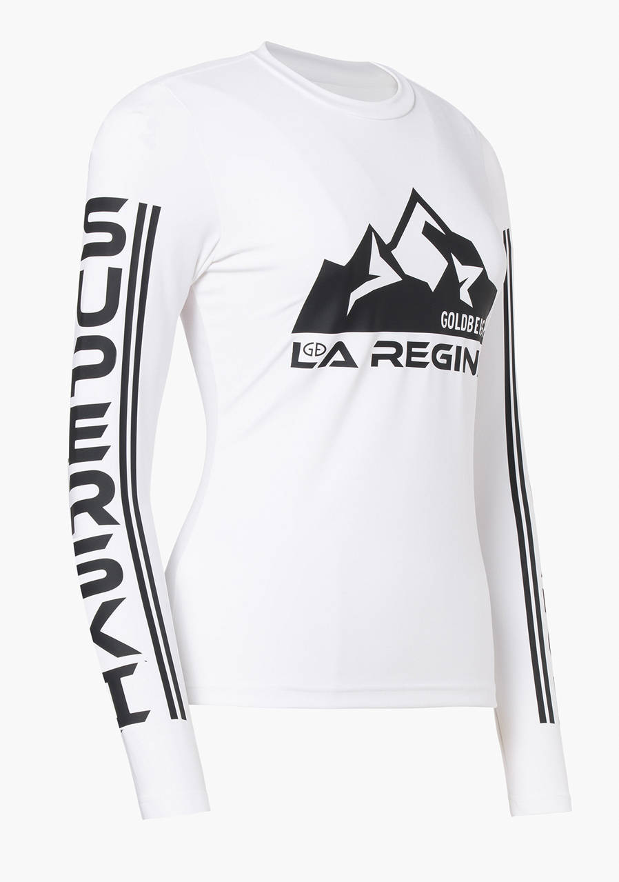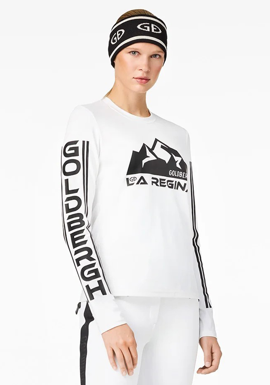 Toto slim fit triko kombinuje moderní design s vysokou funkčností. Powerstretch interlock poskytuje pohodlí a volnost pohybu, zatímco dlouhé rukávy a úzký střih podtrhují elegantní siluetu. Potisk Goldbergh La Regina na přední straně a rukávech dodává výrazný a stylový detail, tkaná značka na bočním švu pak zdůrazňuje prémiový vzhled.