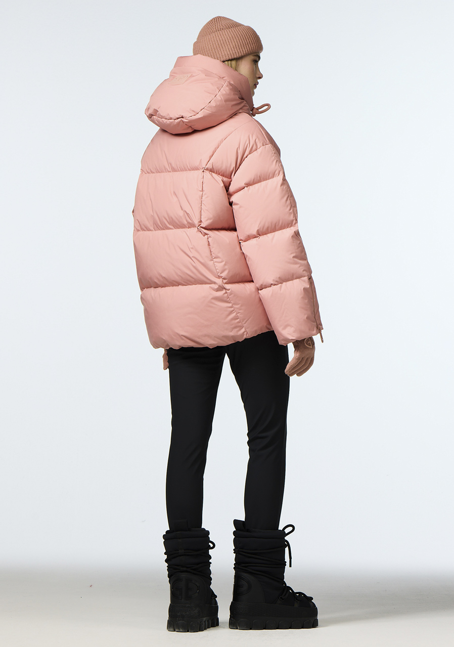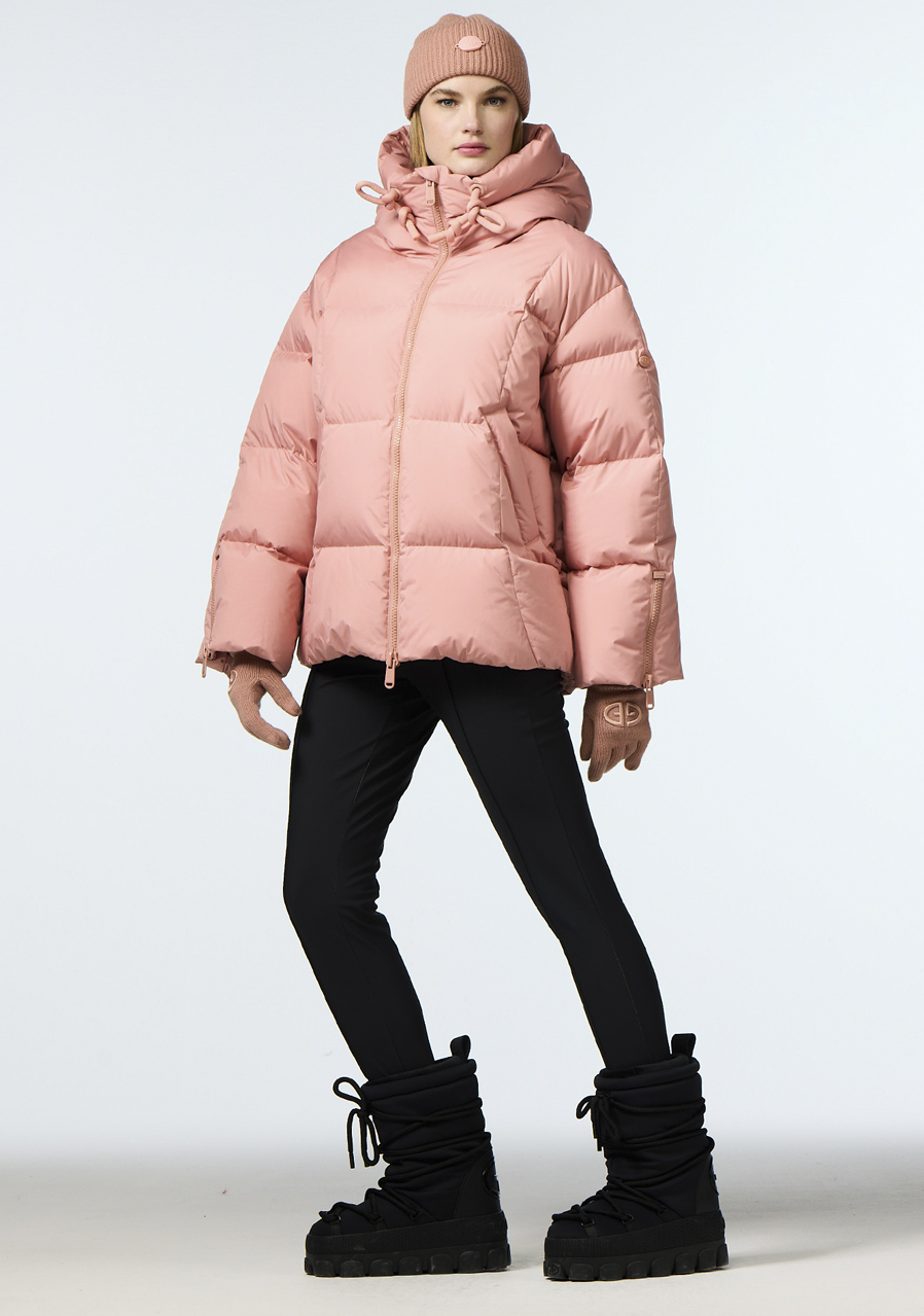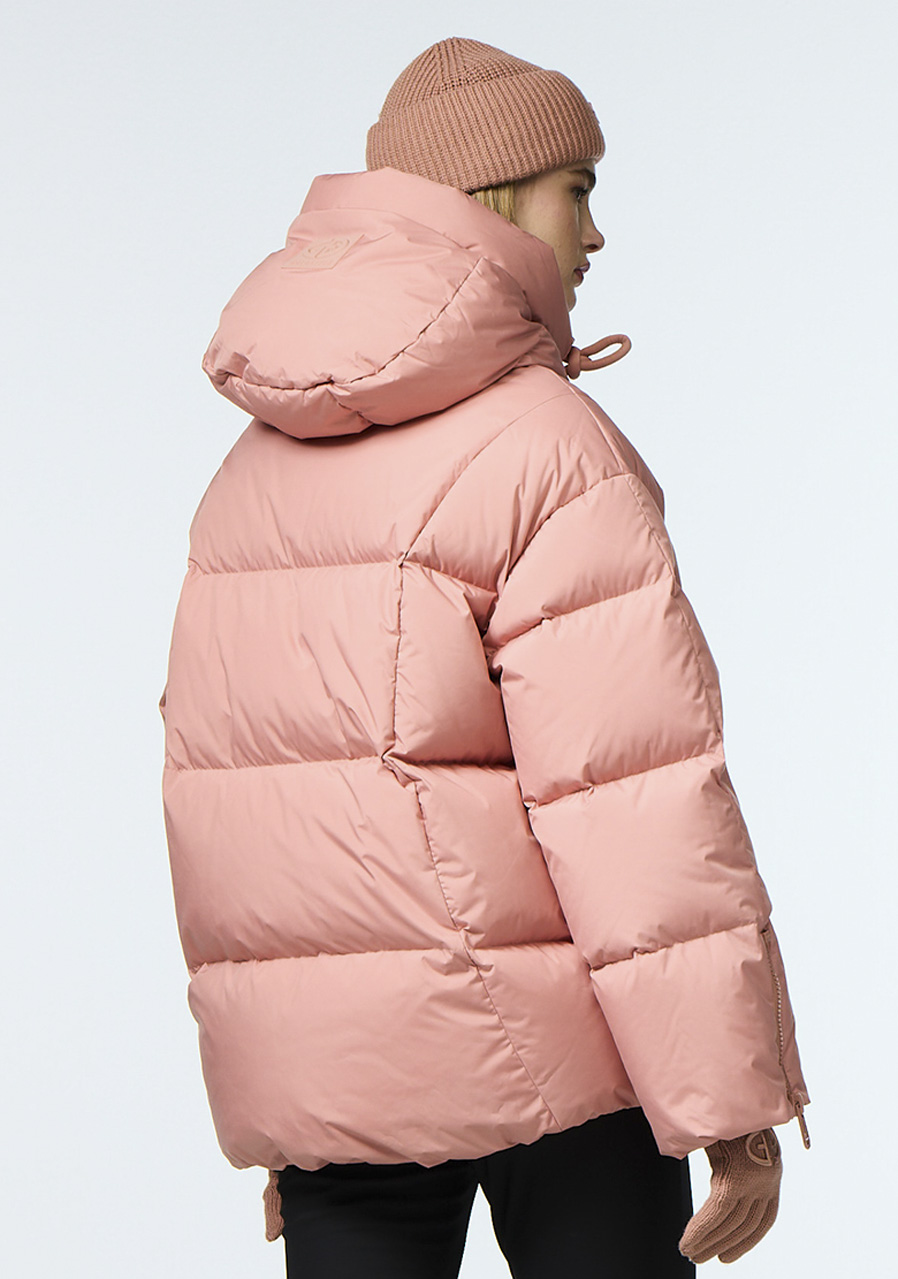 Tato dámská zimní bunda s volným střihem nabízí komfort a ochranu i při náročných zimních podmínkách. Díky praktickému vybavení, jako jsou zipy na rukávech, kapsa na skipas, vnitřní popruh pro nošení a odepínatelný sněhový pás, je ideální volbou pro lyžování i aktivní městské nošení. Výplň z husího peří certifikovaného podle RDS standardu zajišťuje spolehlivou tepelnou izolaci, zatímco recyklované materiály a podšívka s antiodor úpravou podtrhují její udržitelný charakter.