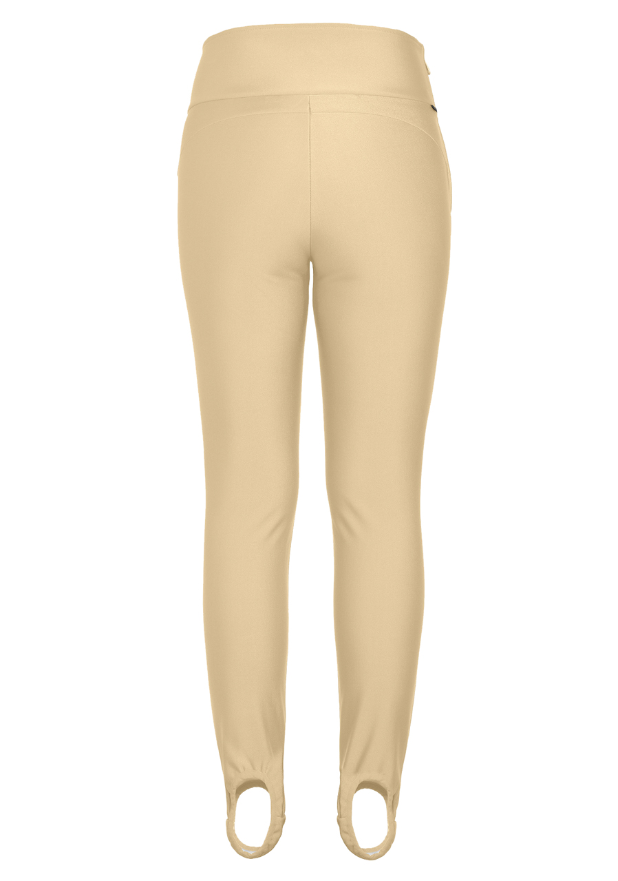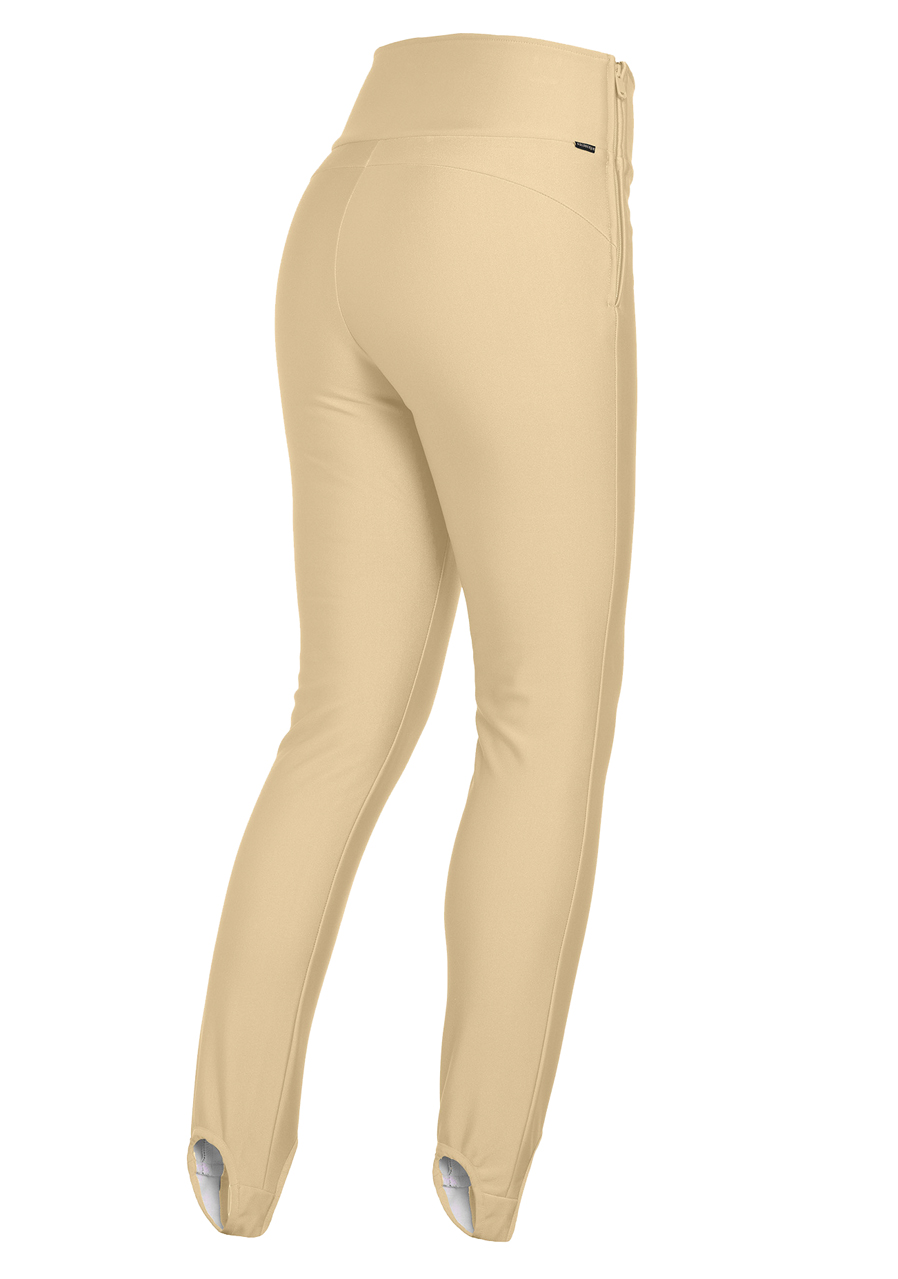 Tyto přiléhavé kalhoty ve slim fit střihu perfektně sedí díky strečovému pasu se zapínáním na zip na boční straně. Praktické stahovací návleky (stirrups) na koncích nohavic zajišťují, že kalhoty dobře drží na místě – ideální volba pro sportovní aktivity i stylový každodenní outfit. Materiál je pružný, voděodolný a zároveň prodyšný, což zaručuje pohodlí i v náročnějších podmínkách.