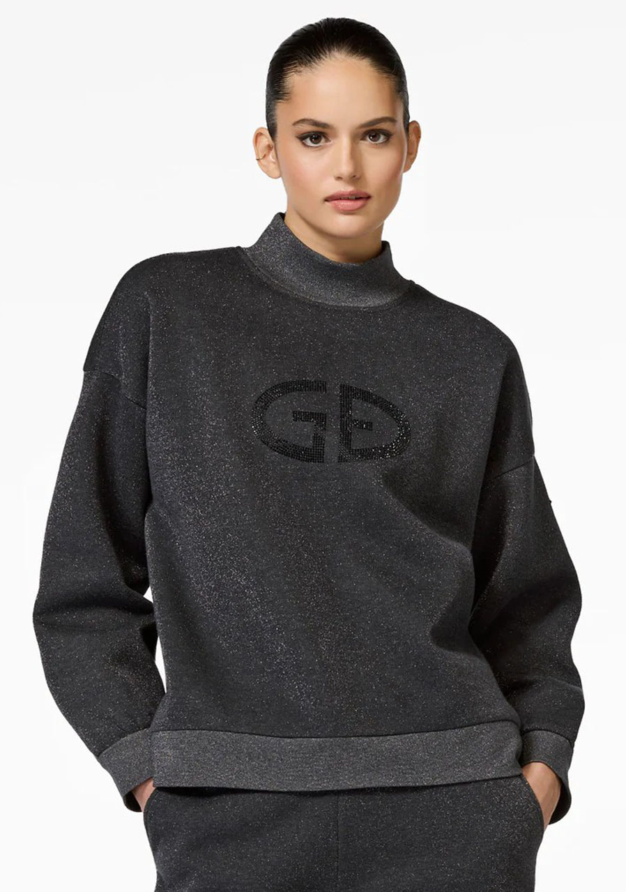 Stylová mikina s volnějším střihem spojuje měkkost a pohodlí fleecu s jemným metalickým leskem díky lurexové přízi na vnější straně. Vnitřní strana je příjemně počesaná pro maximální komfort. Žebrovaný stojáček, lem i manžety zajišťují pohodlné nošení, zatímco výrazné logo GB ze strass kamínků na hrudi dodává celku glamour vzhled. Pro dokonalý komplet ji můžete sladit s tepláky Glimpse ve stejném stylu.