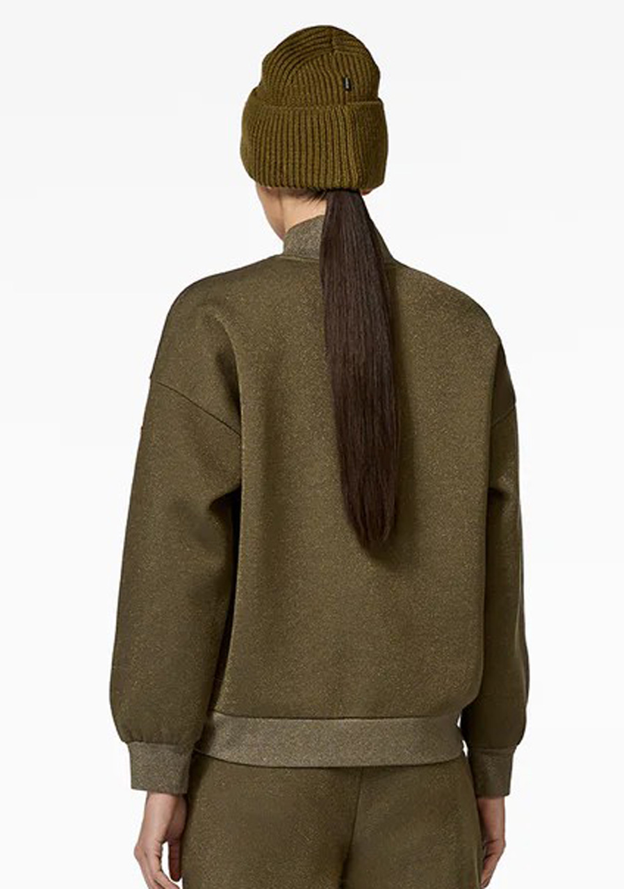 Parametry: Materiál: fleece s počesanou rubovou stranou Složení: 72 % organická bavlna, 18 % Lurex, 10 % recyklovaný polyester Délka: 63,5 cm ve velikosti M (měřeno na zádech uprostřed)