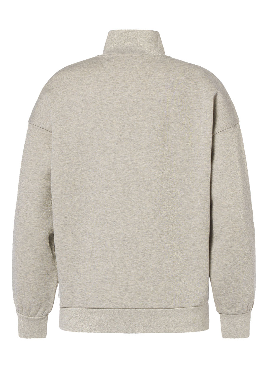Stylová mikina s volnějším střihem spojuje měkkost a pohodlí fleecu s jemným metalickým leskem díky lurexové přízi na vnější straně. Vnitřní strana je příjemně počesaná pro maximální komfort. Žebrovaný stojáček, lem i manžety zajišťují pohodlné nošení, zatímco výrazné logo GB ze strass kamínků na hrudi dodává celku glamour vzhled. Pro dokonalý komplet ji můžete sladit s tepláky Glimpse ve stejném stylu.