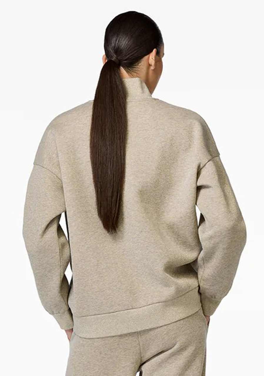 Parametry: Materiál: fleece s počesanou rubovou stranou Složení: 72 % organická bavlna, 18 % Lurex, 10 % recyklovaný polyester Délka: 63,5 cm ve velikosti M (měřeno na zádech uprostřed)