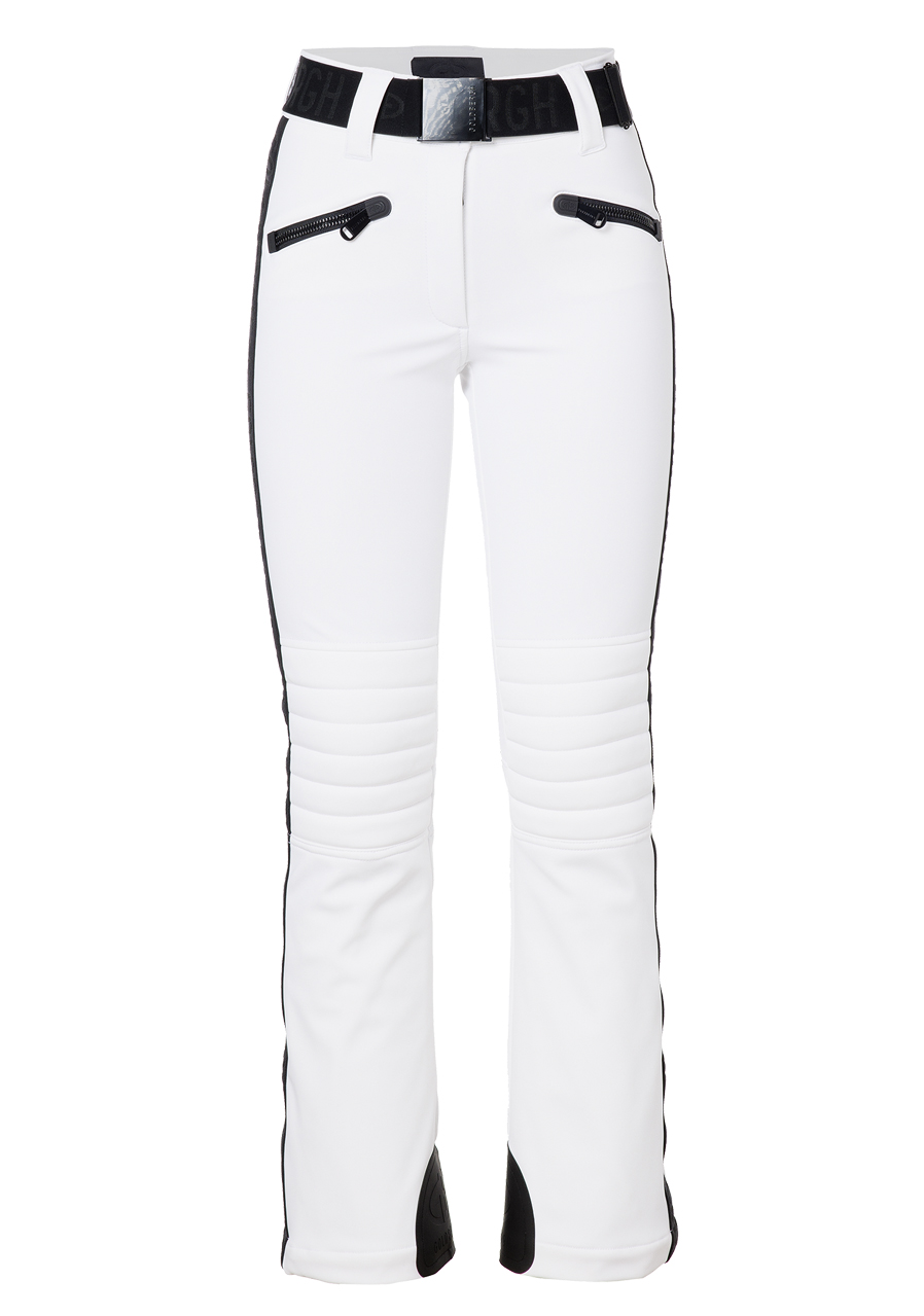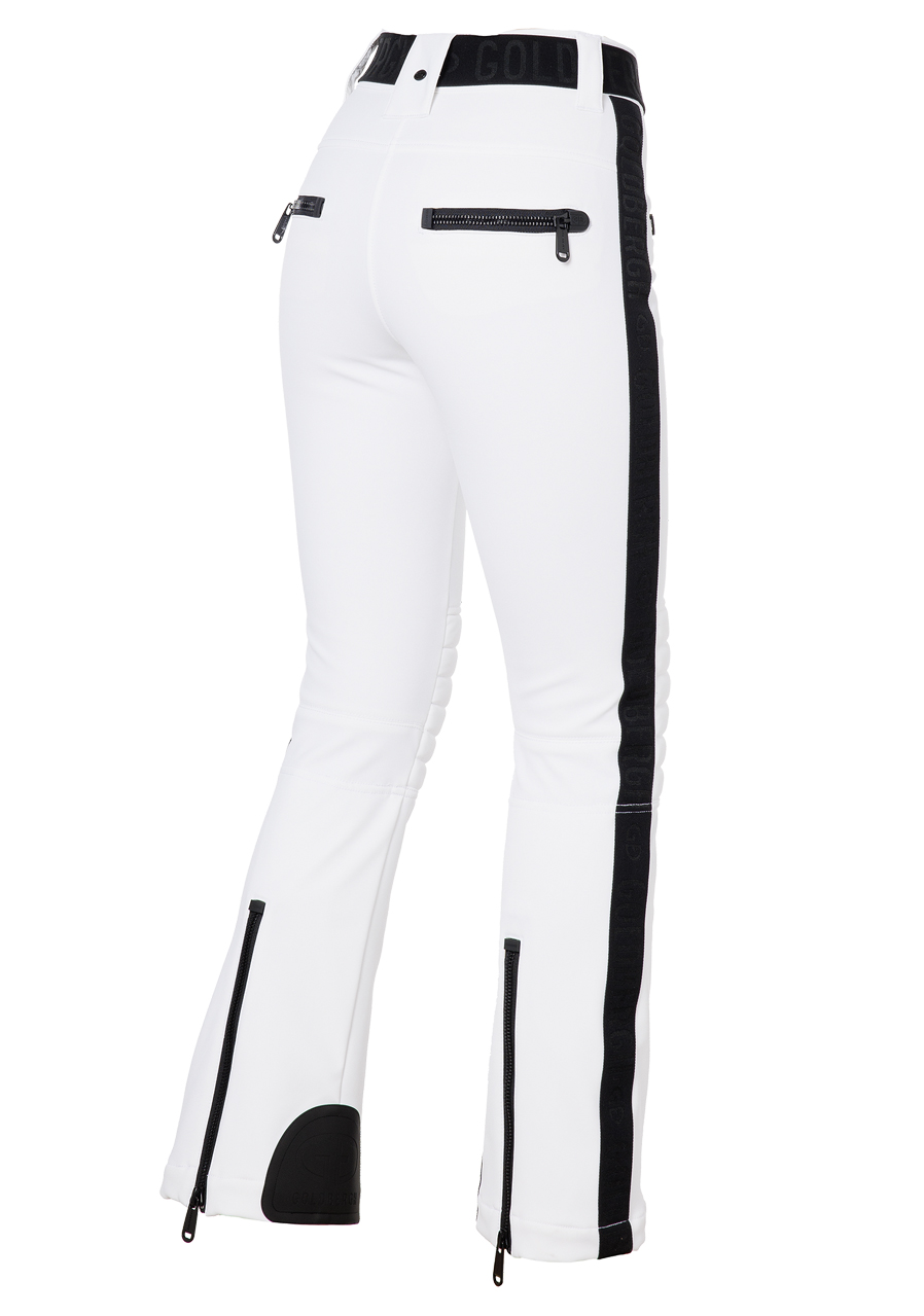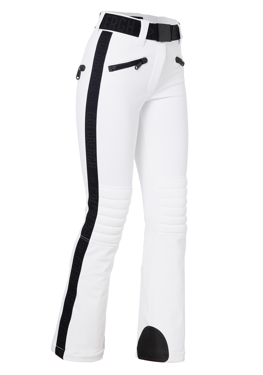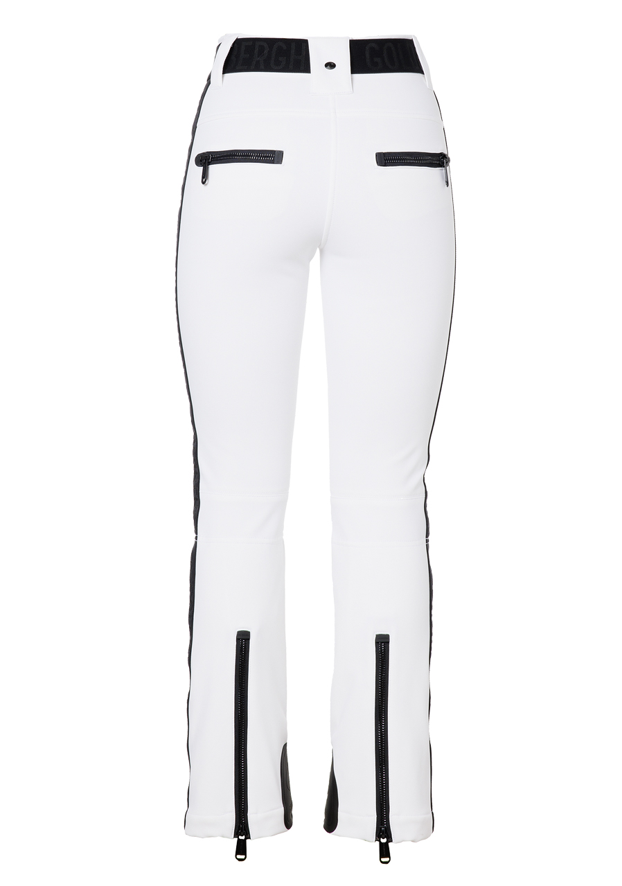 Tyto dámské lyžařské kalhoty v moderním slim fit střihu nabízejí dostatek úložného prostoru díky čtyřem kapsám na zip. Elastický pás zajišťuje pohodlné přilnutí, zatímco vycpané části v oblasti kolen poskytují extra ochranu a komfort. Zipy na zadní straně nohavic usnadňují oblékání přes boty. Spodní část je opatřena sněhovým návlekem, který brání pronikání sněhu. Elastická vsadka Goldbergh na bočních švech přidává stylový detail. Tento model je k dispozici i v delší variantě GB016-75-254, která je o 4 cm delší. Kalhoty mají standardní velikostní střih, doporučujeme zvolit běžnou velikost.