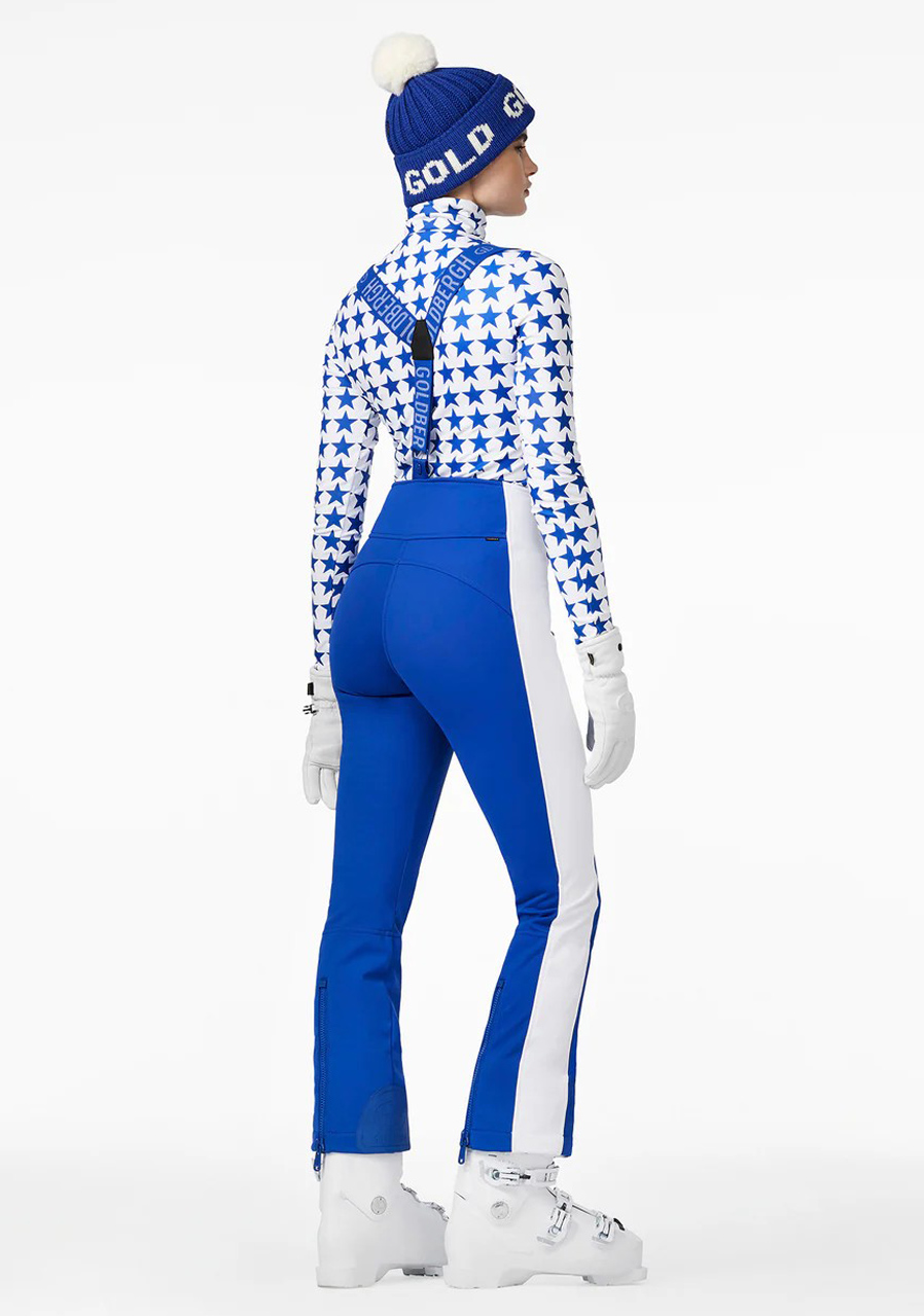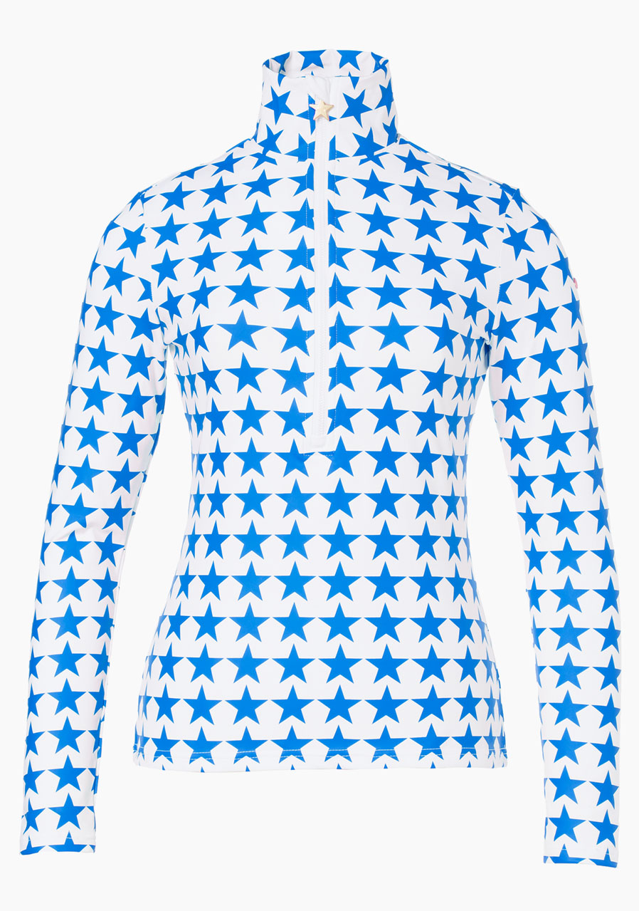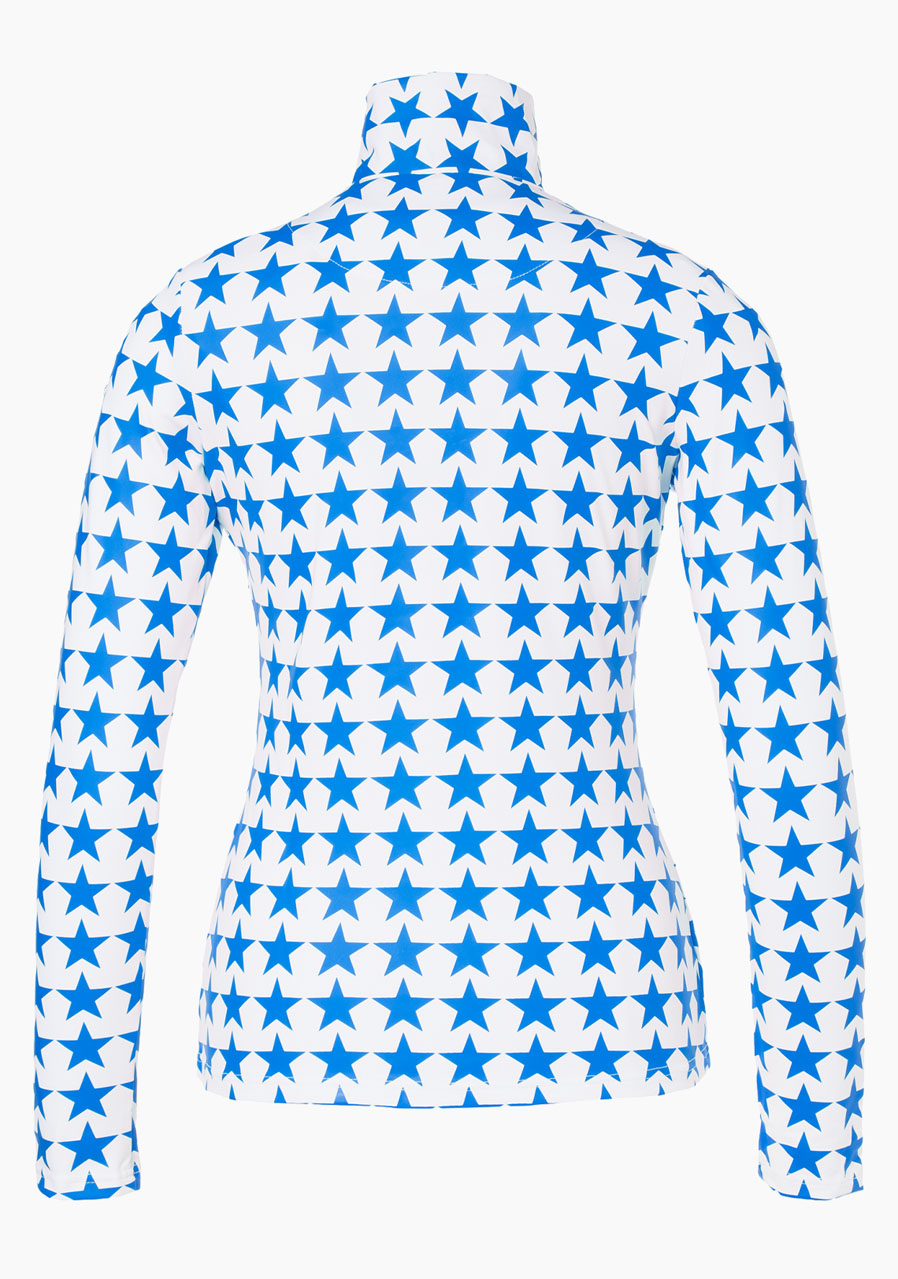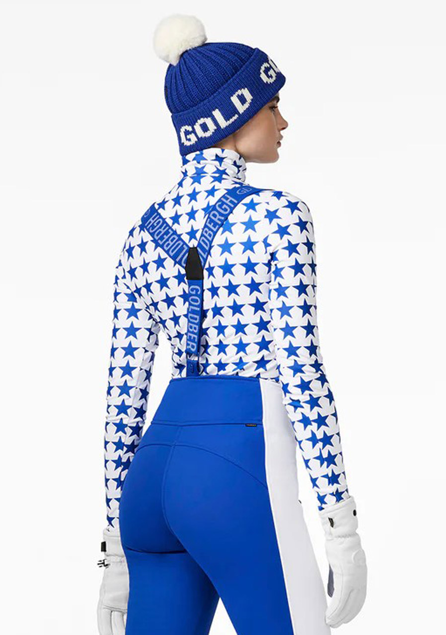 Goldbergh Sportif Ski Pully v odstínu Dazzling Blue je stylový a funkční lyžařský rolák navržený pro ženy, které chtějí spojit výkon a módu. Tento prémiový kousek je vyroben z kvalitního elastického materiálu s Powerstretch technologií a s vnitřní česanou úpravou, který se dokonale přizpůsobí tělu a zajišťuje maximální pohodlí při pohybu. Rychleschnoucí tkanina odvádí vlhkost, což oceníte při sportovních aktivitách na horách. Rolák je vybaven krátkým zipem u krku, což umožňuje snadnou regulaci teploty. Kromě své funkčnosti zaujme také výrazým modrým potiskem ve tvaru hvězd, který dodává vašemu lyžařskému outfitu šmrnc.