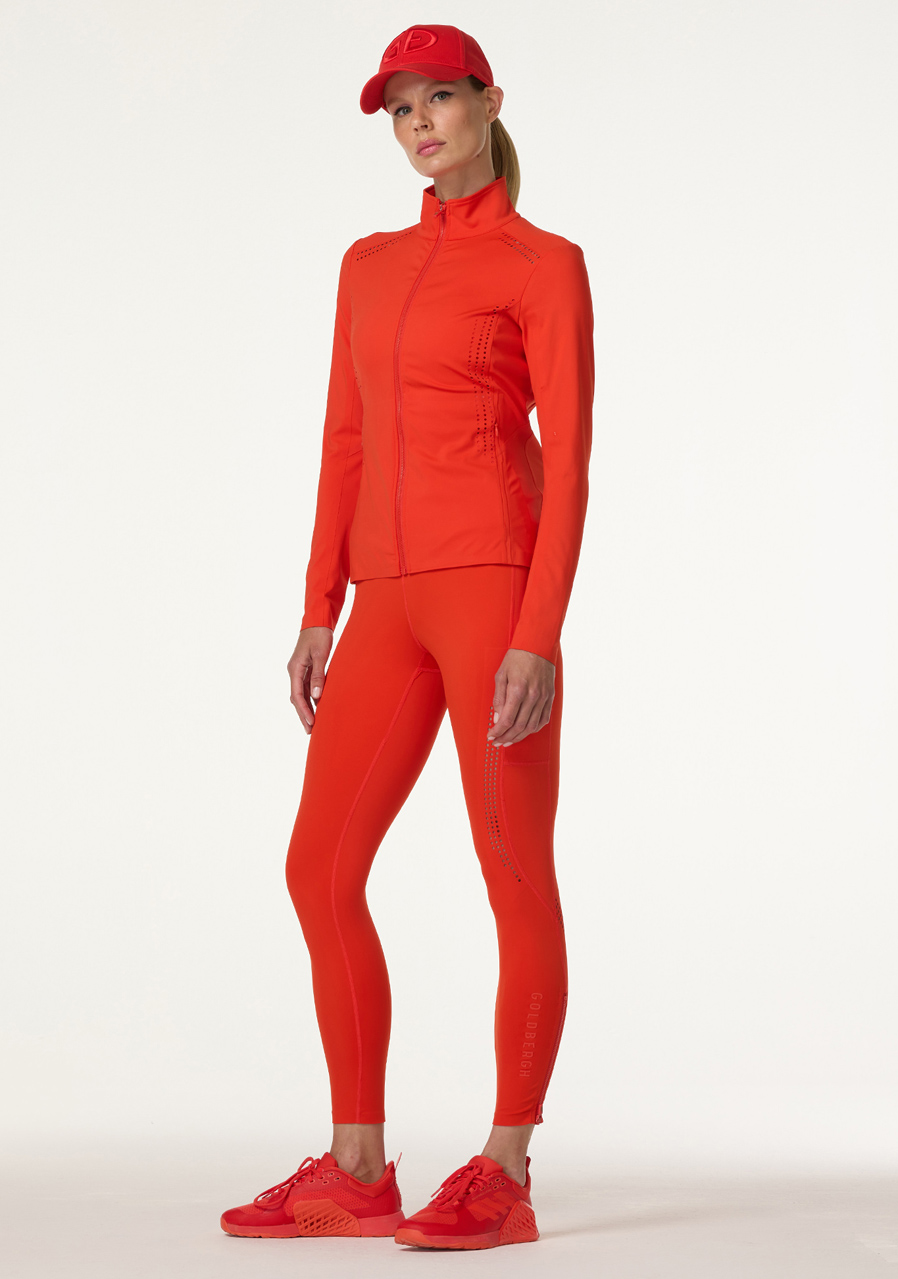 Dámská mikina Goldbergh VERONIQUE je synonymem pro styl a pohodlí. Vyrobená je z velmi elastického materiálu, který se dokonale přizpůsobí vaší postavě a poskytne vám maximální pohodlí během odpočinkového i aktivního dne. Budete-li se chystat na nákupy, procházku či sportovní aktivitu, mikina Veronique vás nikdy nezklame. Na rukávu najdete decentní logo značky GB. Po celé délce mikiny je perforovaný materiál, který vytváří jedinečný moderní vzhled.