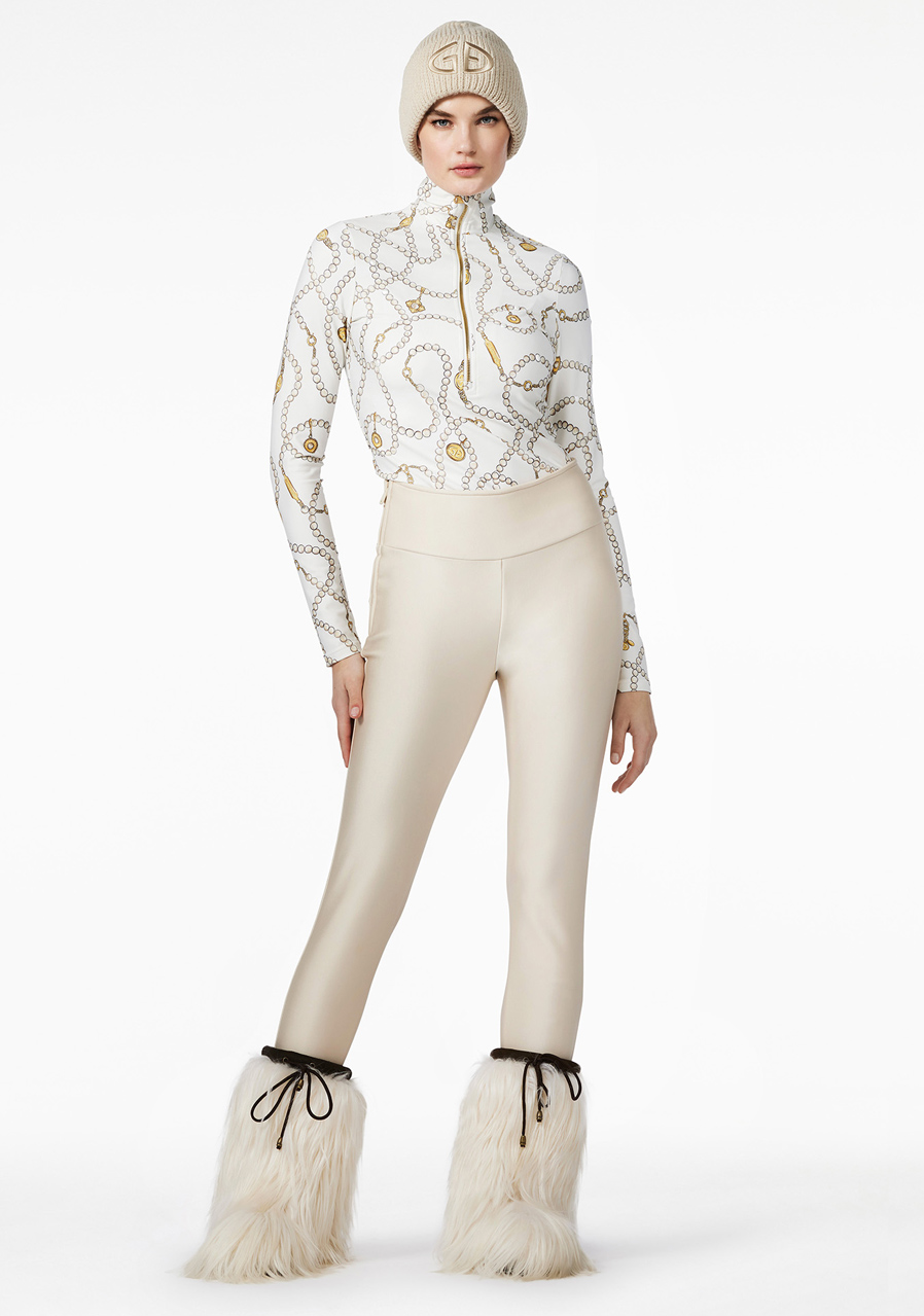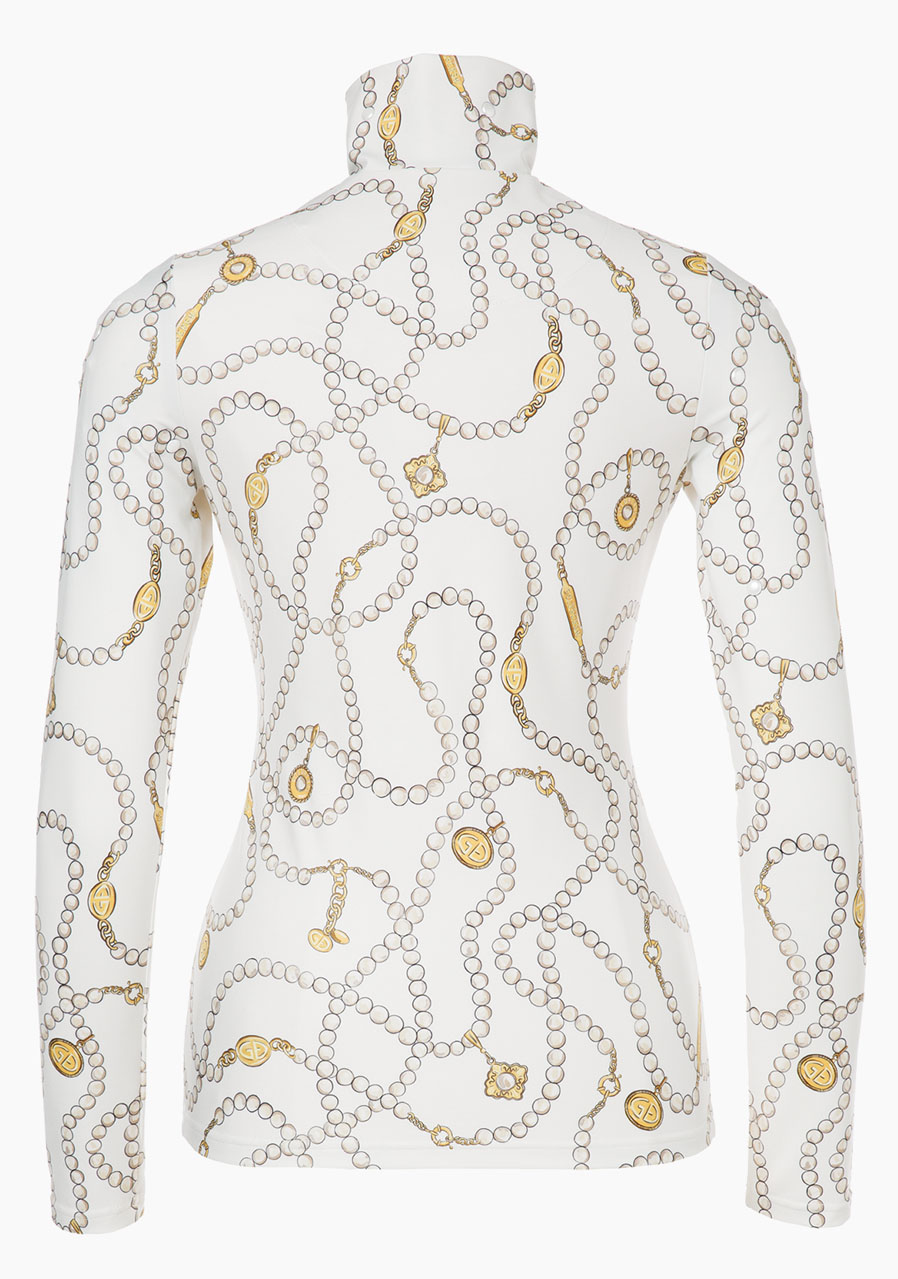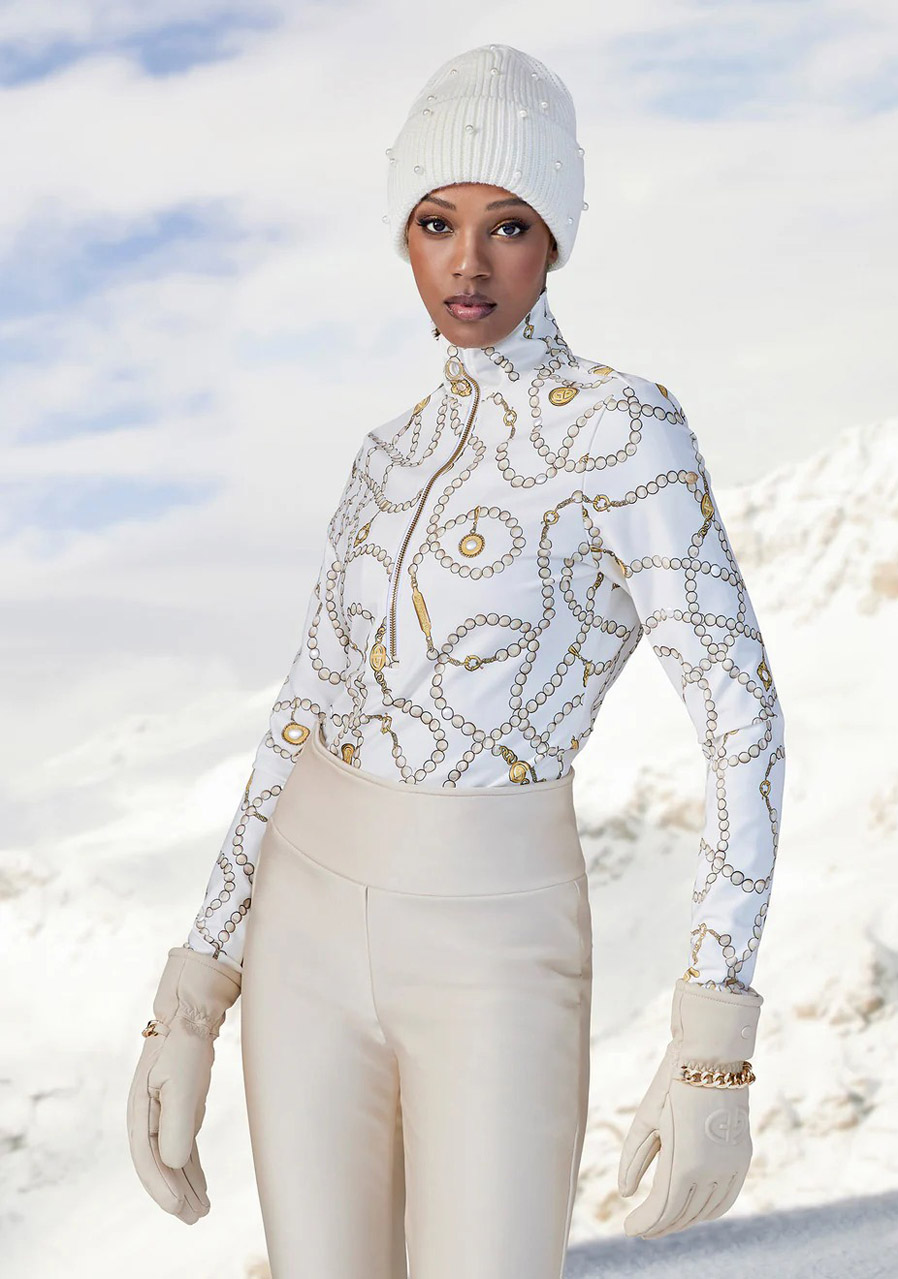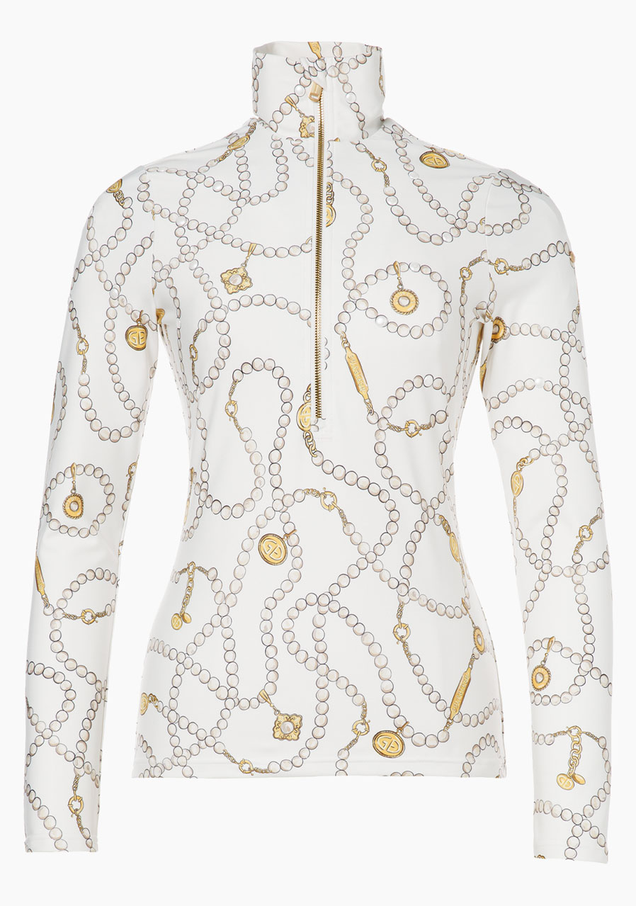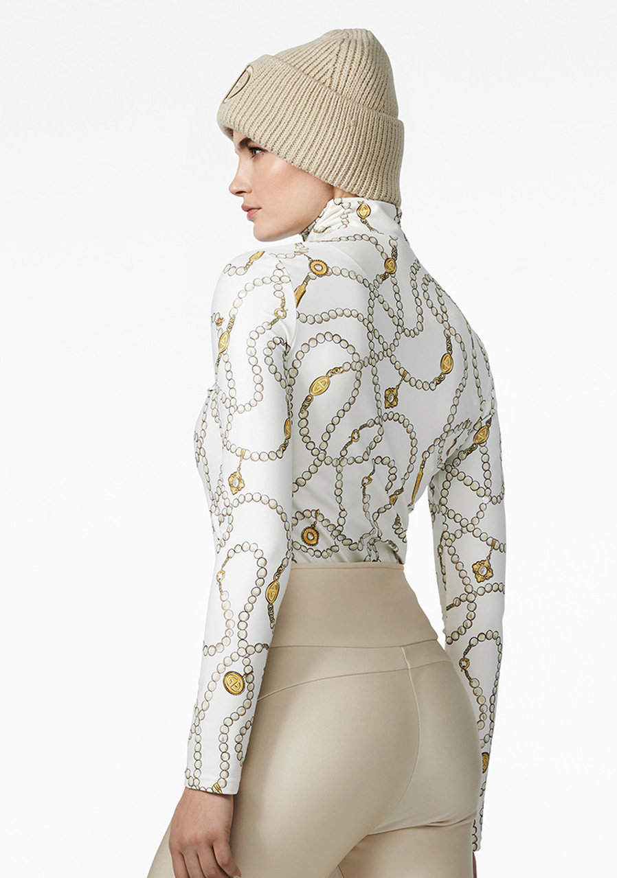 Goldbergh Vivienne Ski Pully v krémové barvě je luxusní a stylový rolák navržený pro lyžařky, které chtějí kombinovat módní vzhled s funkčností. Tento rolák je vyroben z kvalitních materiálů s Powerstretch technologií, které poskytují teplo a pohodlí při lyžování, ale zároveň jsou lehké a prodyšné a vybaveny speciální anti-odor a rychleschnoucí úpravou. Díky svému přiléhavému střihu (slim fit) a vysokému límci působí sofistikovaně, ať už jste na sjezdovce, nebo ve středisku. Rolák je dále vybaven zipem pro snadnější oblékání a ozdoben malými perlemi na rukávech a přední straně roláku. Materiál má také pružnost, což umožňuje volný pohyb při sportu. Ideální volba pro ty, kteří hledají výkonnostní oblečení s módním nádechem.