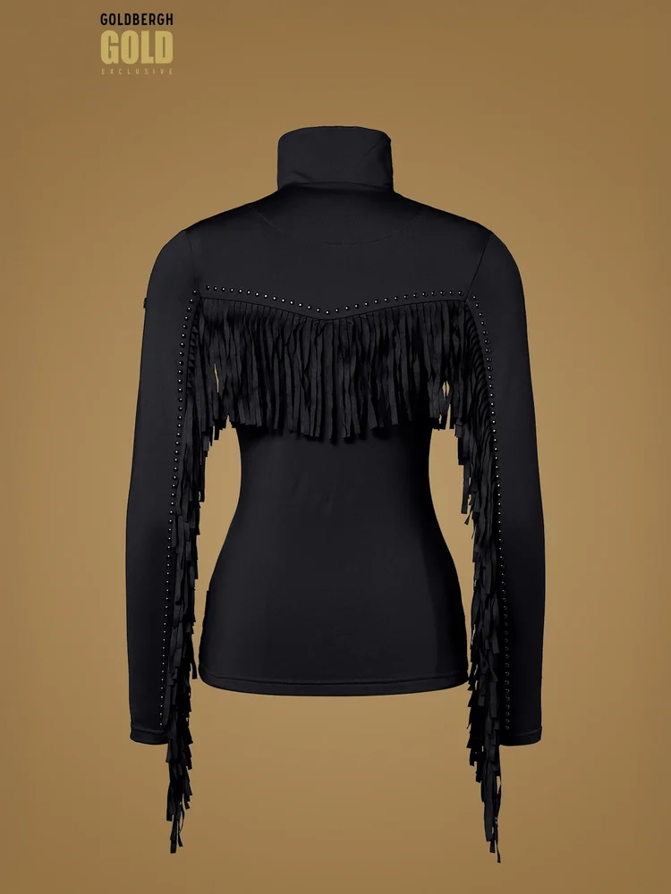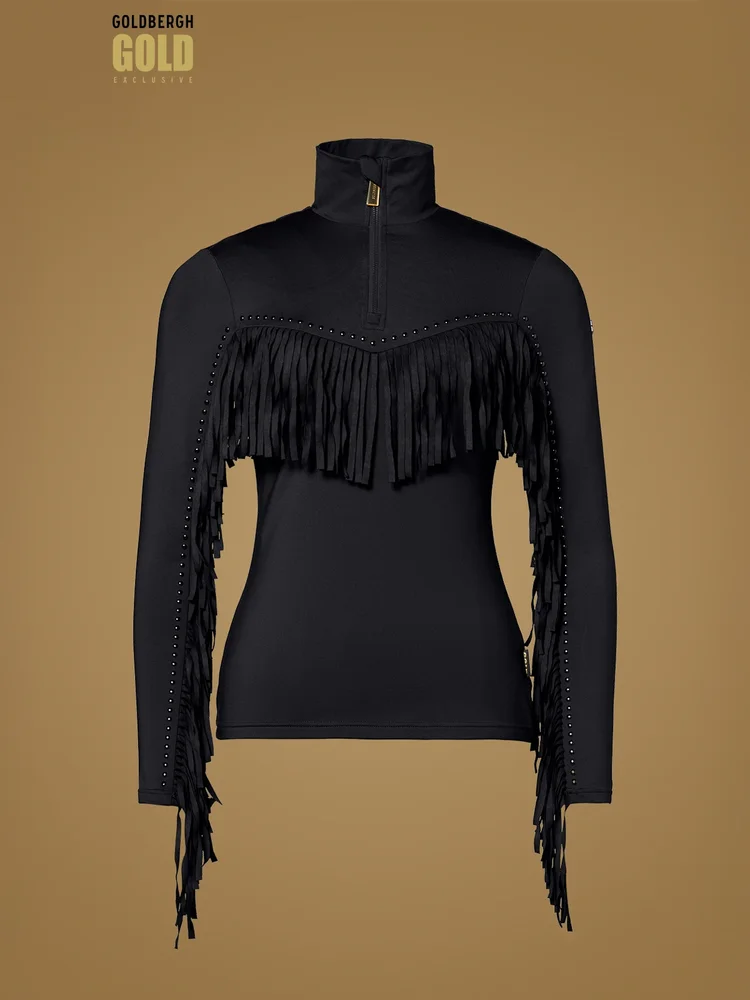 Slim fit triko z elastického dresu s jemně kartáčovanou zadní stranou zajišťuje teplo a pohodlí při nošení Úzký stojáček s předním ½ zipem umožňuje snadné oblékání a větrání Třásně s cvočky podél panelových švů vpředu a vzadu dodávají výrazný styl, kovová značka GOLD na rukávu podtrhuje luxusní vzhled Triko odpovídá standardní velikosti
