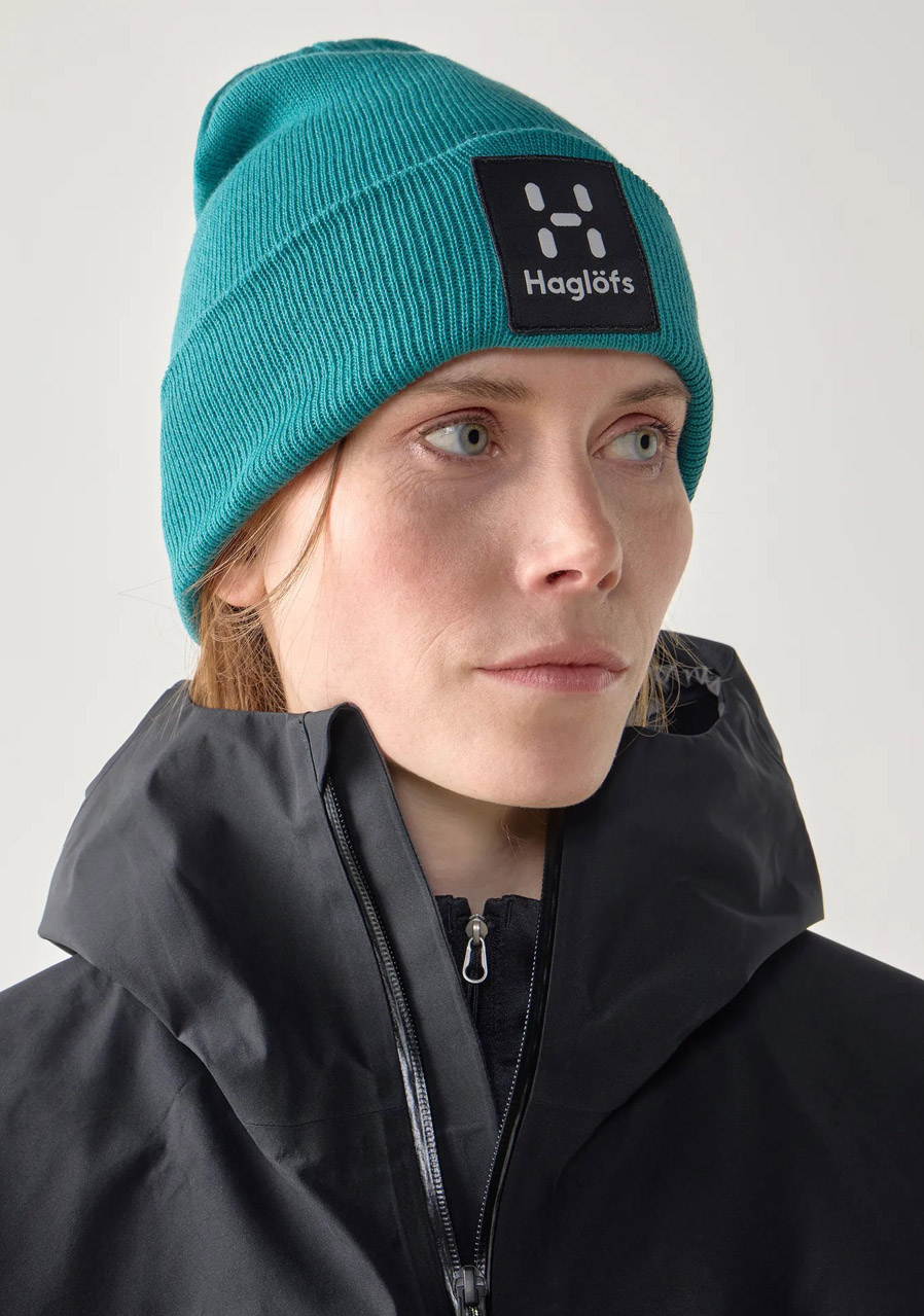 Parametry: Materiál: 50 % recyklovaný polyester, 50 % akryl Střih: klasický s ohrnovacím lemem Úplet: jemný, pružný Logo Haglöfs na přední straně Kolekce: Zima