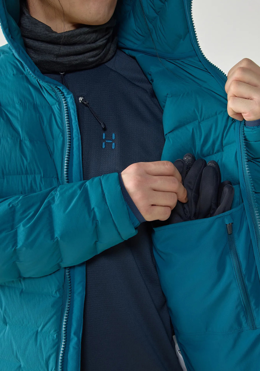 Parametry: Svrchní materiál: 100 % polyamid (GORE-TEX INFINIUM™ Windstopper®, vodoodpudivá úprava bez PFAS) Podšívka: 100 % polyamid Výplň: 90 % husí prachové peří, 10 % peří (RDS certifikace) Plnivost: 800 cuin Střih: technický, regular fit Kapuce: zateplená, kompatibilní s helmou, nastavitelná Zapínání: dvoucestný zip po celé délce Kapsy: dvě boční kapsy na zip, hrudní kapsa, vnitřní kapsa Manžety: nastavitelné, spodní lem stahovatelný Logo Haglöfs na hrudi a rukávu Kolekce: Zima