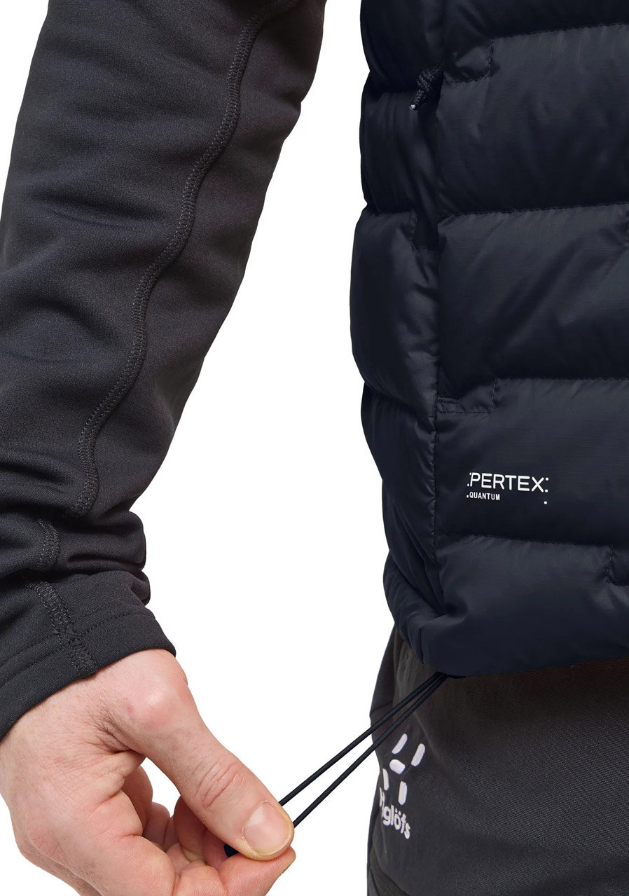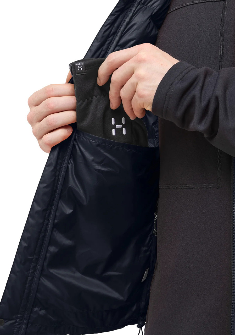 Parametry: Svrchní materiál: 100 % recyklovaný polyamid (Pertex® Quantum, vodoodpudivá úprava bez PFAS) Podšívka: 100 % recyklovaný polyamid Výplň: 90 % husí prachové peří, 10 % peří (RDS certifikace) Plnivost: 800 cuin Střih: regular fit Límec: zateplený, stojáček Zapínání: dvoucestný zip po celé délce Kapsy: dvě boční kapsy na zip, vnitřní kapsa Spodní lem: nastavitelný Logo Haglöfs na hrudi Kolekce: Zima
