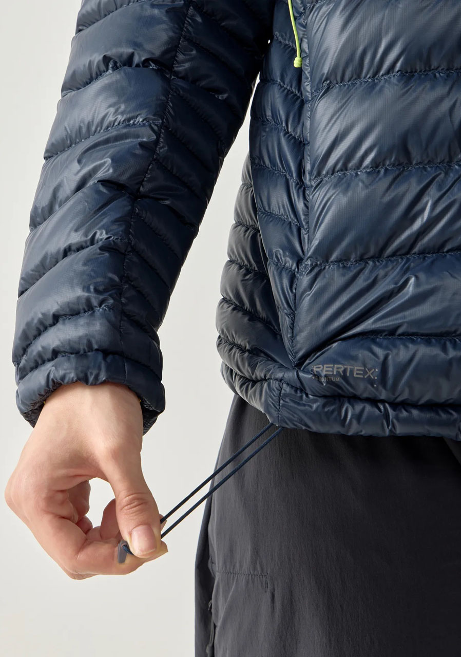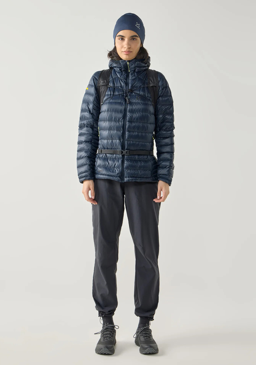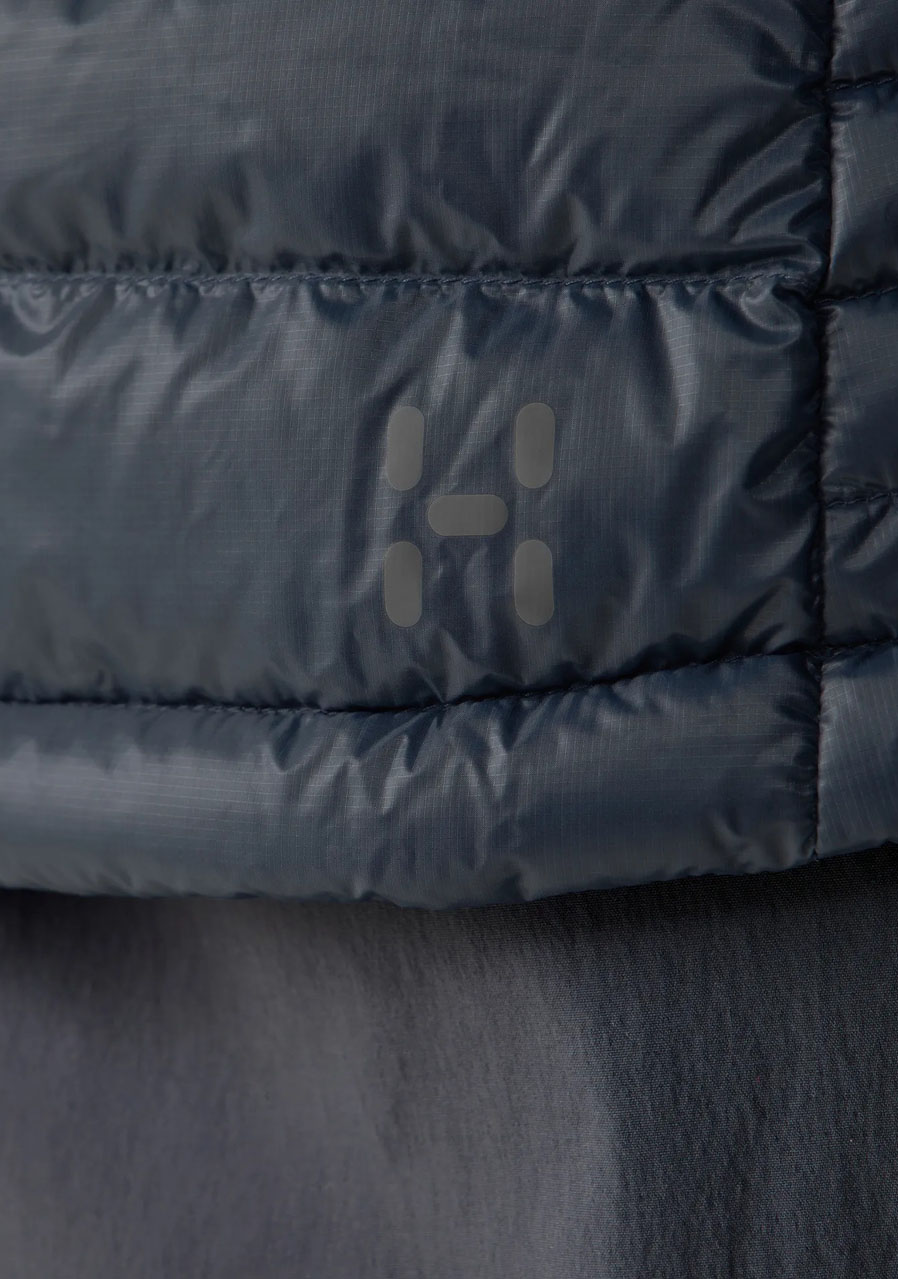 Parametry: Svrchní materiál: 100 % recyklovaný polyamid (Pertex® Quantum, vodoodpudivá úprava bez PFAS) Podšívka: 100 % recyklovaný polyamid Výplň: 90 % husí prachové peří, 10 % peří (RDS certifikace) Plnivost: 800 cuin Střih: regular fit Kapuce: zateplená, elasticky lemovaná Zapínání: zip po celé délce Kapsy: dvě boční kapsy na zip Manžety a spodní lem: elastické Logo Haglöfs na hrudi Kolekce: Zima