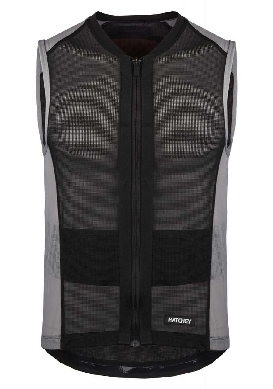 vyjímatelný měkký ochranný zádový plát v Soft Anti-shock designu kvalitní zip YKK po spodním obvodu vesty je protiskluzový silikonový proužek široký elastický bederní pás na suchý zip schválení podle normy ČSN EN 1621-2:2014, třída 1