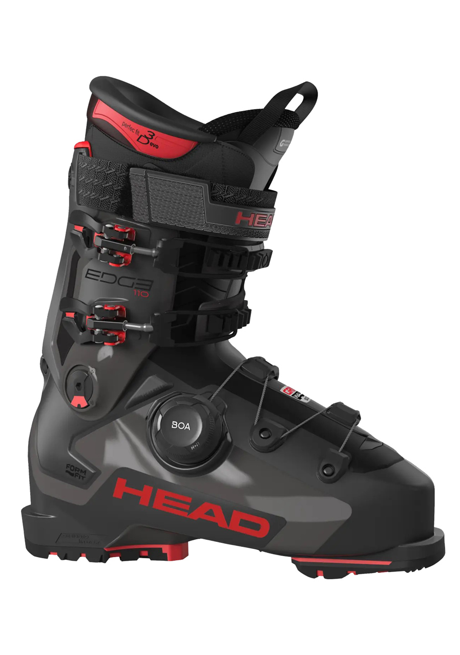 Lyžařské boty Head EDGE 110 HV GW BOA v barvě Anthracite/Red jsou určeny pro pokročilé a sportovní lyžaře, kteří hledají výkonný, ale zároveň komfortní model s větším vnitřním objemem. Označení HV (High Volume) znamená rozšířený skelet (102 mm), ideální pro lyžaře se širším chodidlem nebo vyšším nártem. Inovativní systém BOA® Fit System umožňuje precizní a rovnoměrné utažení přes nárt, čímž zlepšuje obepnutí nohy a kontrolu nad lyží. Tvarovatelná vnitřní botička 3D Perfect Fit EVO Liner poskytuje vynikající tepelný komfort a přizpůsobení tvaru nohy. Lehčí konstrukce skeletu EZ-Tech Shell s technologií Hi-Top Tech zajišťuje efektivní přenos energie z nohy na lyži a snadné nazouvání. Boty jsou vybaveny podrážkou GripWalk, která zlepšuje trakci při chůzi a zvyšuje bezpečnost mimo sjezdovku.