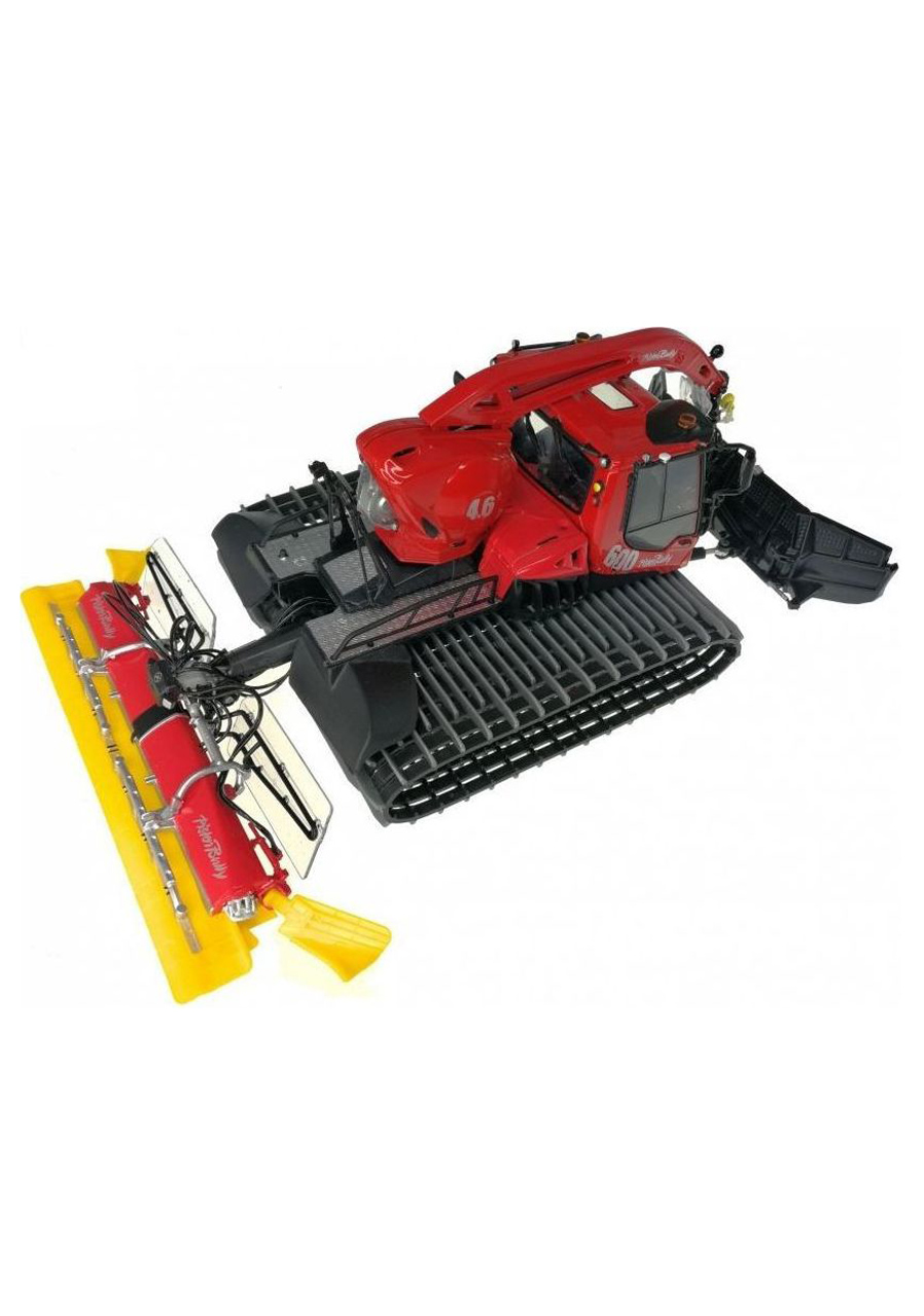 Konstrukce: Detailní model sněžné rolby PistenBully Level Red v měřítku, vybavený funkčním navijákem. Věrně reprodukuje tvar, proporce a barevné provedení skutečného stroje určeného pro úpravu sjezdovek, včetně pracovních nástrojů vpředu a vzadu. Materiál: Kovové a plastové díly, realisticky tvarované pásy z odolné gumy, přesný barevný potisk, transparentní kabina s detailním interiérem. Funkce: Otočná přední radlice s možností nastavení sklonu, zadní fréza s pohyblivými prvky, funkční naviják s lankem, volně otočné pásy, realistické detaily kabiny. Technické parametry: Měřítko dle originálu, délka modelu přibližně 40 cm (v závislosti na konfiguraci příslušenství), kompatibilita s dalšími modelovými doplňky Jägerndorfer. Výhody: Precizní provedení, funkční pohyblivé části, odolné materiály, vysoká úroveň detailů.