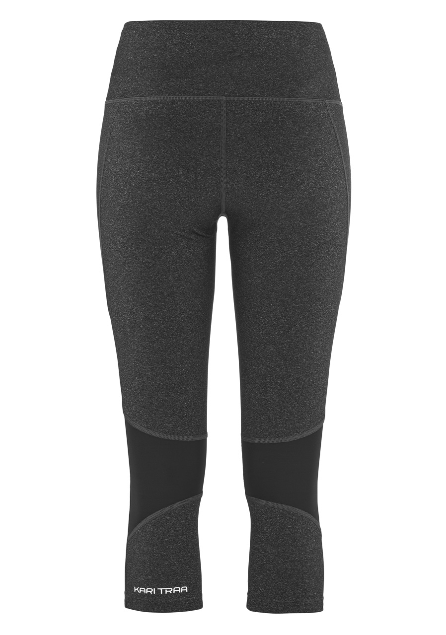 Detaily: Široký pas bez šňůrky, ploché švy pro minimalizaci tření, decentní logo Kari Traa na levé nohavici. Barva Black – klasická černá pro univerzální použití.