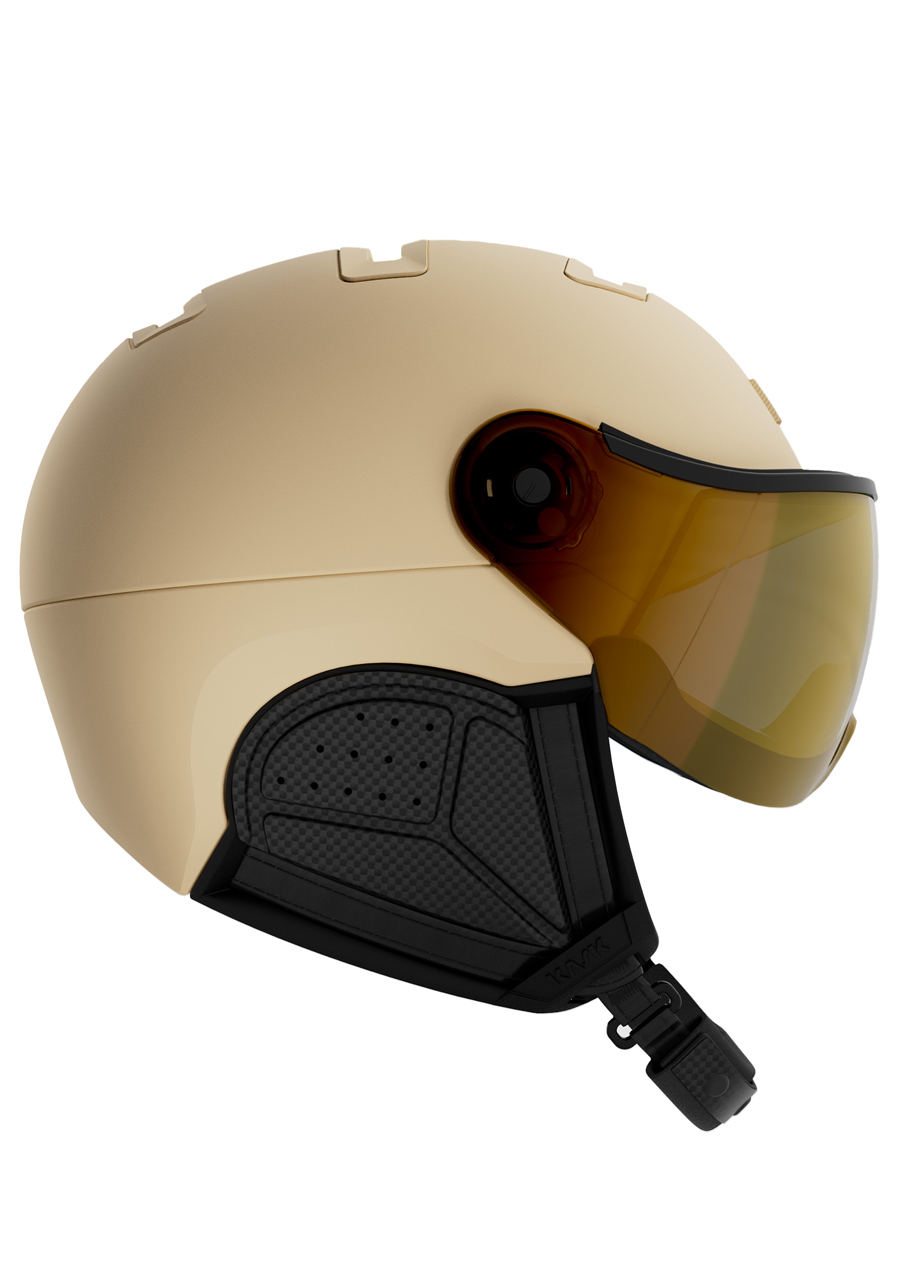 Prémiová sjezdová helma Kask SHE00061 v elegantní pískové barvě Sahara Shadow kombinuje styl, bezpečnost a pohodlí pro náročné lyžaře. Díky integrovanému zrcadlovému štítu Shadow Visor je ideální volbou pro slunečné i proměnlivé podmínky – bez potřeby samostatných lyžařských brýlí.
