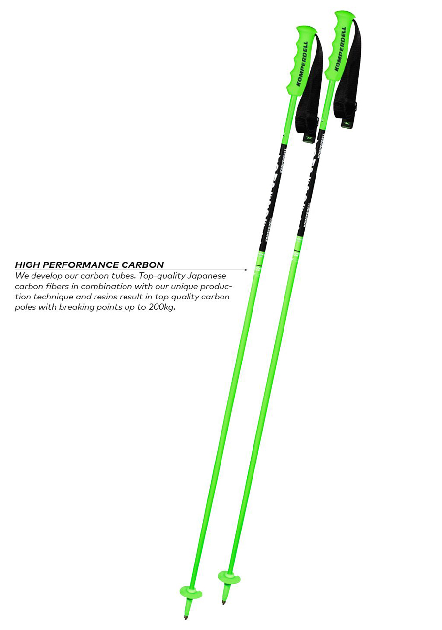 Nationalteam Carbon vyrobený z vysoce kvalitních uhlíkových vláken zajišťuje silný pocit přilnavosti při závodní přilnavosti a je díky svému originálnímu designu Komperdell World Cup ideální pro ambiciózní lyžaře.