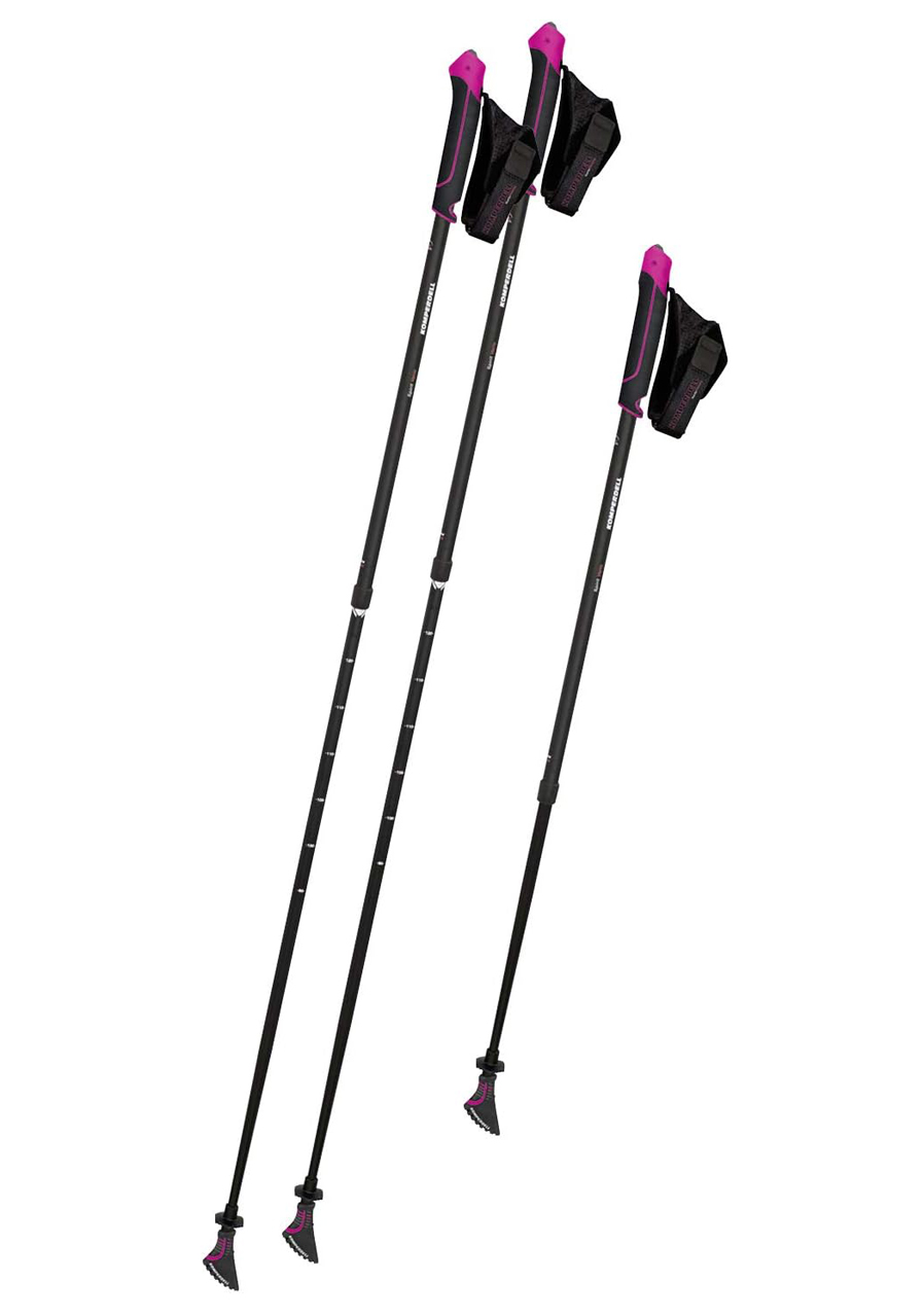 Dvoudílné, hliníkové, skládací hůlky od rakouské firmy Komperdell s vycvakávací rukavičkou. Hrot je karbidový. Vizáží nepřehlédnutelné a do ruky příjemné hůlky, které se dají nastavit od 85 - 125 cm. Hůlky jsou u s botkami na tvrdý povrch. Na výlety jako stvořené.