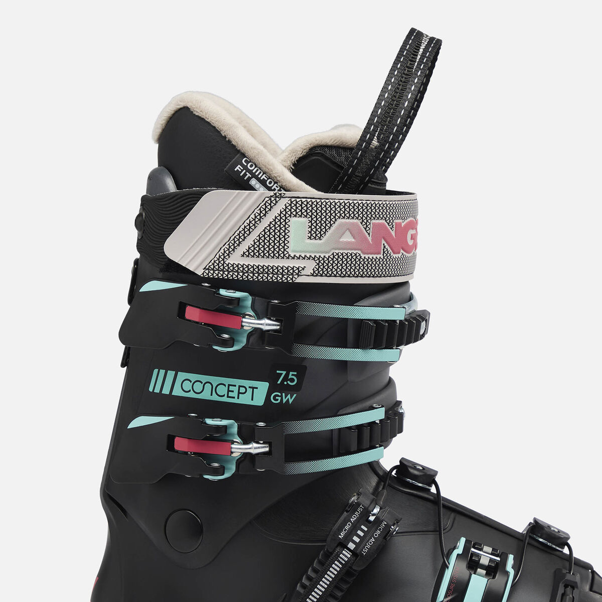 Dámské lyžařské boty Lange Concept 7.5 W GW jsou navrženy pro rekreační a mírně pokročilé lyžařky, které hledají pohodlnou, bezpečnou a snadno ovladatelnou obuv. Díky měkčímu flexu poskytují optimální rovnováhu mezi stabilitou a komfortem, takže jsou vhodné i pro delší dny na sjezdovce. Vnitřní botička zajistí tepelný komfort a příjemný pocit, zatímco podrážka GripWalk® zlepšuje přilnavost a pohodlí při chůzi.
