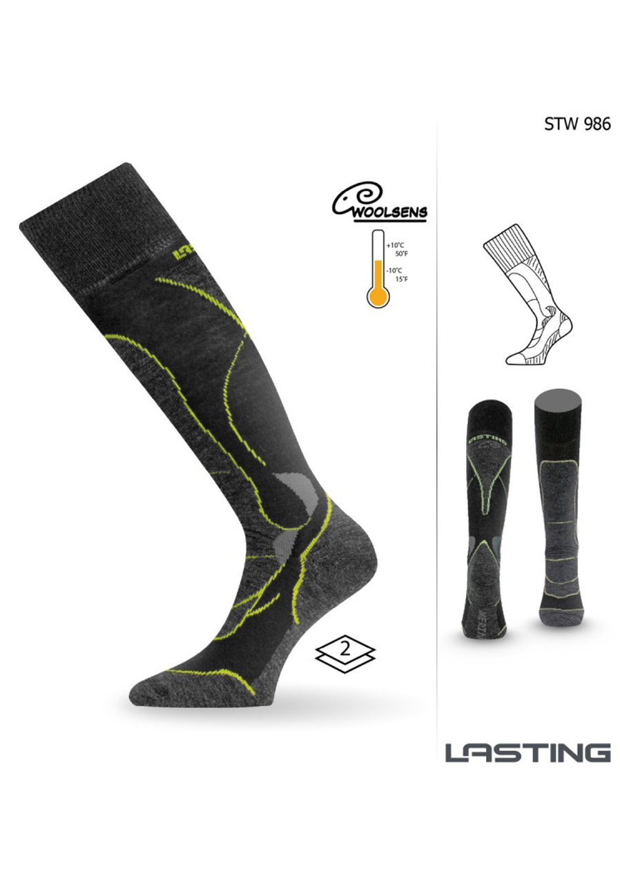 Tyto podkolenky Lasting STW-986 jsou navrženy pro maximální komfort při lyžování a zimních outdoorových aktivitách. Vysoký obsah merino vlny zajišťuje vynikající termoizolaci i v náročných podmínkách. Zesílené části v oblasti chodidla, špičky, holeně a Achillovy paty poskytují ochranu proti otlakům a vyšší odolnost při opakované zátěži. Jemný lem a ploché švy minimalizují riziko podráždění pokožky – vaše nohy zůstávají v teple, suchu a pohodlí i během dlouhého působení v botách.
