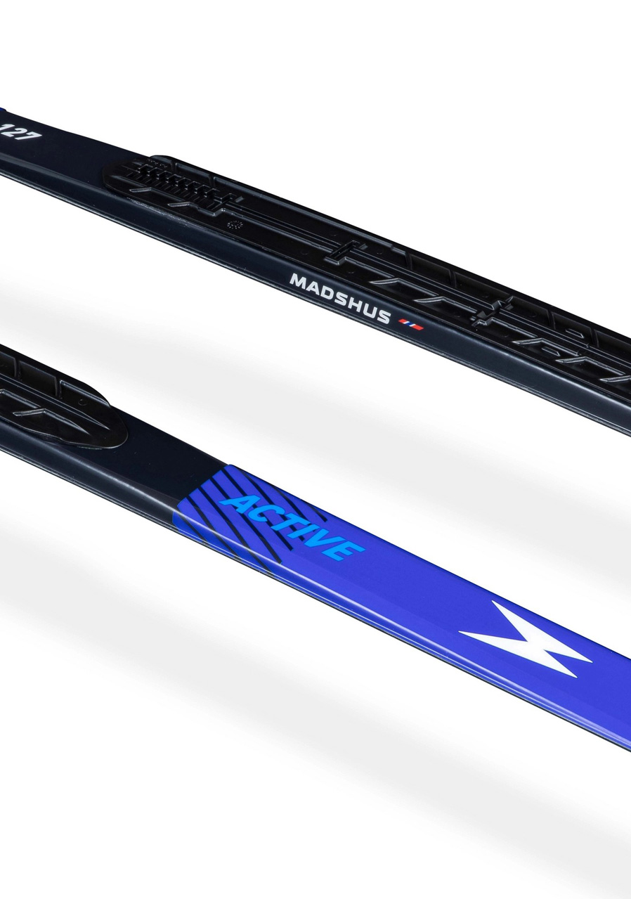 Madshus Active Skin jsou klasické běžky vhodné pro rekreační i sportovně založené lyžaře, kteří hledají pohodlí, stabilitu a spolehlivý odraz bez nutnosti voskování. Díky integrovaným mohérovým stoupacím pásům (skin) nabízí skvělé vlastnosti při stoupání i plynulý skluz na upravených tratích.