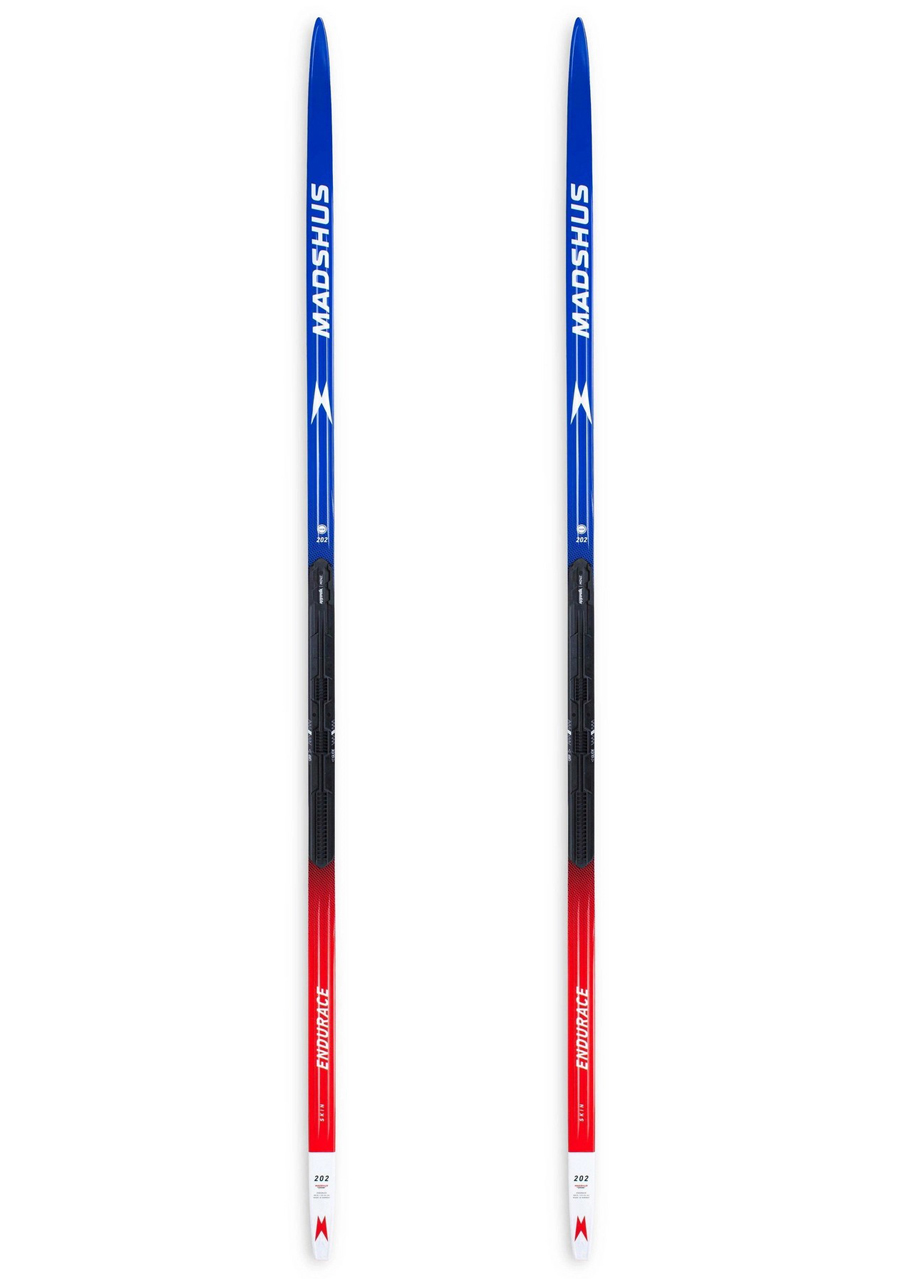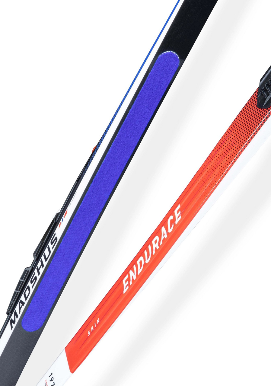 Madshus Endurace Skin jsou klasické běžky s integrovaným skinem (stoupacím pásem), které kombinují sportovní výkon, snadné použití a bezúdržbový provoz. Jsou vhodné pro pokročilé rekreační i sportovně zaměřené lyžaře, kteří chtějí efektivní skluz a jistý odraz bez nutnosti mazání stoupacími vosky.