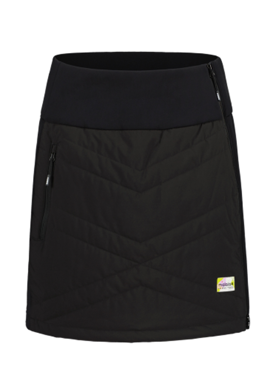 Dámská sukně Maloja HochfeilerM. je ideálním doplňkem pro zimní aktivity i každodenní nošení v chladném počasí. Lehká, hřejivá a funkční – perfektně se hodí přes legíny či úzké kalhoty při běžkování, turistice nebo po sportovním výkonu. Zateplená výplň z recyklovaného polyesteru poskytuje vynikající tepelný komfort, zatímco větruodolný a vodoodpudivý svrchní materiál s úpravou DWR (bez PFAS) chrání před chladem a vlhkostí. Boční zip po celé délce usnadňuje oblékání i svlékání. Elegantní černý design s decentním logem Maloja podtrhuje stylový sportovní vzhled.