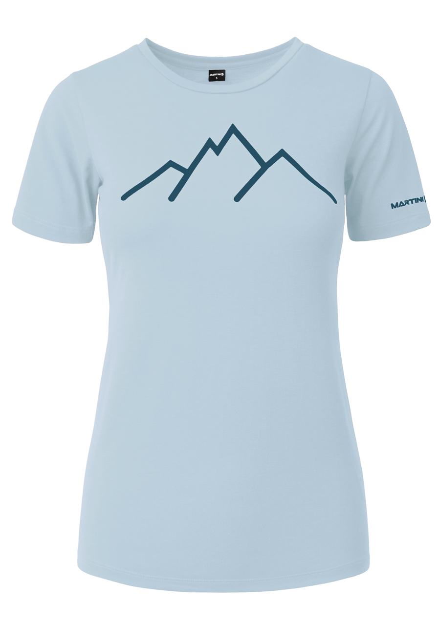 Dámské funkční tričko Martini Alpmate Shirt W v barevné kombinaci Ice/Poseidon je ideální volbou pro aktivní ženy, které hledají pohodlí, funkčnost a styl při sportovních i volnočasových aktivitách.