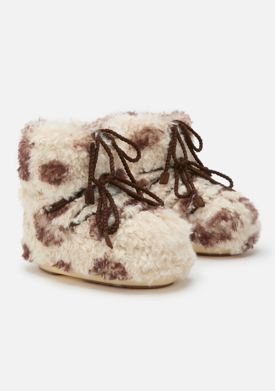 Moon Boot Icon Low Curly – stylové a pohodlné zimní boty Nízká verze ikonických sněhulí Moon Boot přináší jedinečný vzhled díky povrchu inspirovanému kožešinou a nadčasovému designu. Boty jsou navrženy pro chladné zimní dny, kdy oceníte jejich hřejivou podšívku a odolnost vůči vlhkosti. Díky robustní gumové podešvi poskytují jistý krok na zasněženém či kluzkém povrchu, zatímco vodoodpudivá úprava chrání nohy před sněhem a vlhkostí. Stylový vzhled doplňuje pohodlné zpracování, které si získalo oblibu po celém světě.
