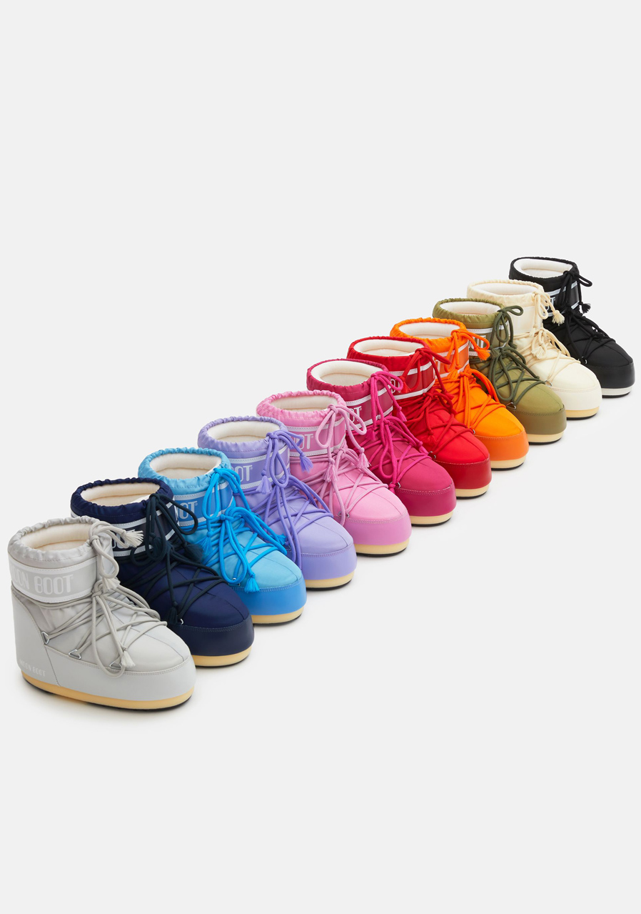 Dámské boty Moon Boot přináší ikonický design inspirovaný historickým přistáním na Měsíci v roce 1969. Tato nízká verze původních Moon Boot kombinuje futuristický vzhled s maximální funkčností. Díky lehké mezipodešvi, vícevrstvé pěnové podšívce a gumové podrážce s přísavkami poskytují skvělou izolaci a kontrolu nad jakýmkoliv terénem. Jsou 100% vodoodpudivé, snadno se nazouvají a nabízejí stahovací šňůrku pro přizpůsobení. S elegantními PVC detaily a kovovými poutky ve stříbrné barvě jsou tyto boty skvělou volbou pro každou zimní sezónu.