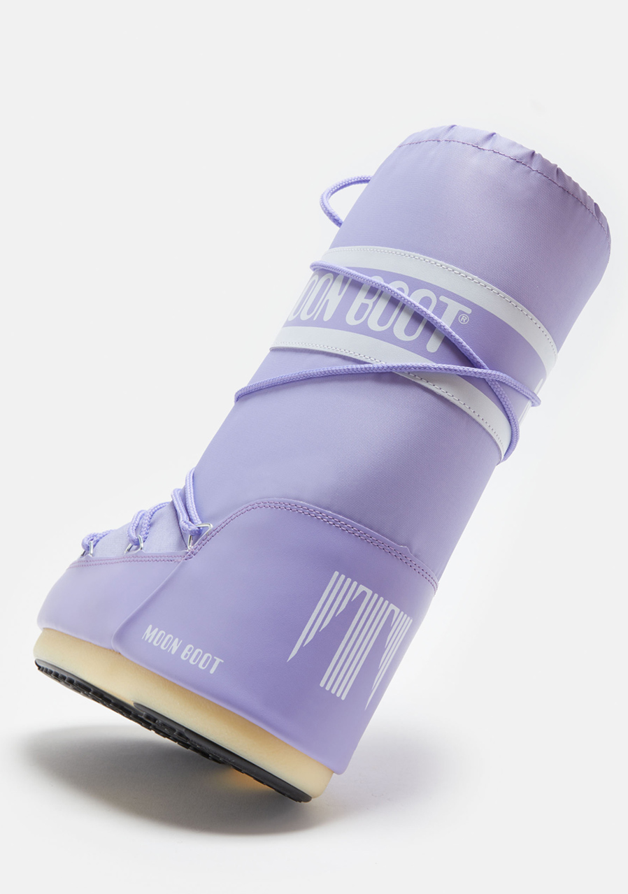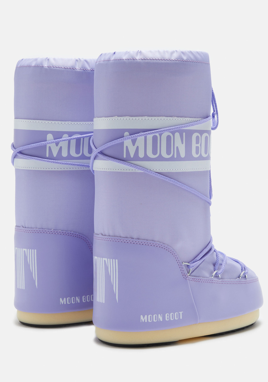 Dámské sněhule Moon Boot Icon Nylon v jemném odstínu E001 Lilac spojují legendární vzhled s moderním barevným pojetím. Tento model zaujme ikonickým designem inspirovaným dobýváním vesmíru a poskytne maximální pohodlí i v chladných zimních dnech. Hřejivá podšívka se postará o komfort, vodoodpudivý svršek ochrání před vlhkostí a sněhem a pevná gumová podešev zajistí stabilitu na zasněženém i zledovatělém povrchu. Perfektní volba pro ženy, které chtějí skloubit praktičnost s módním stylem.