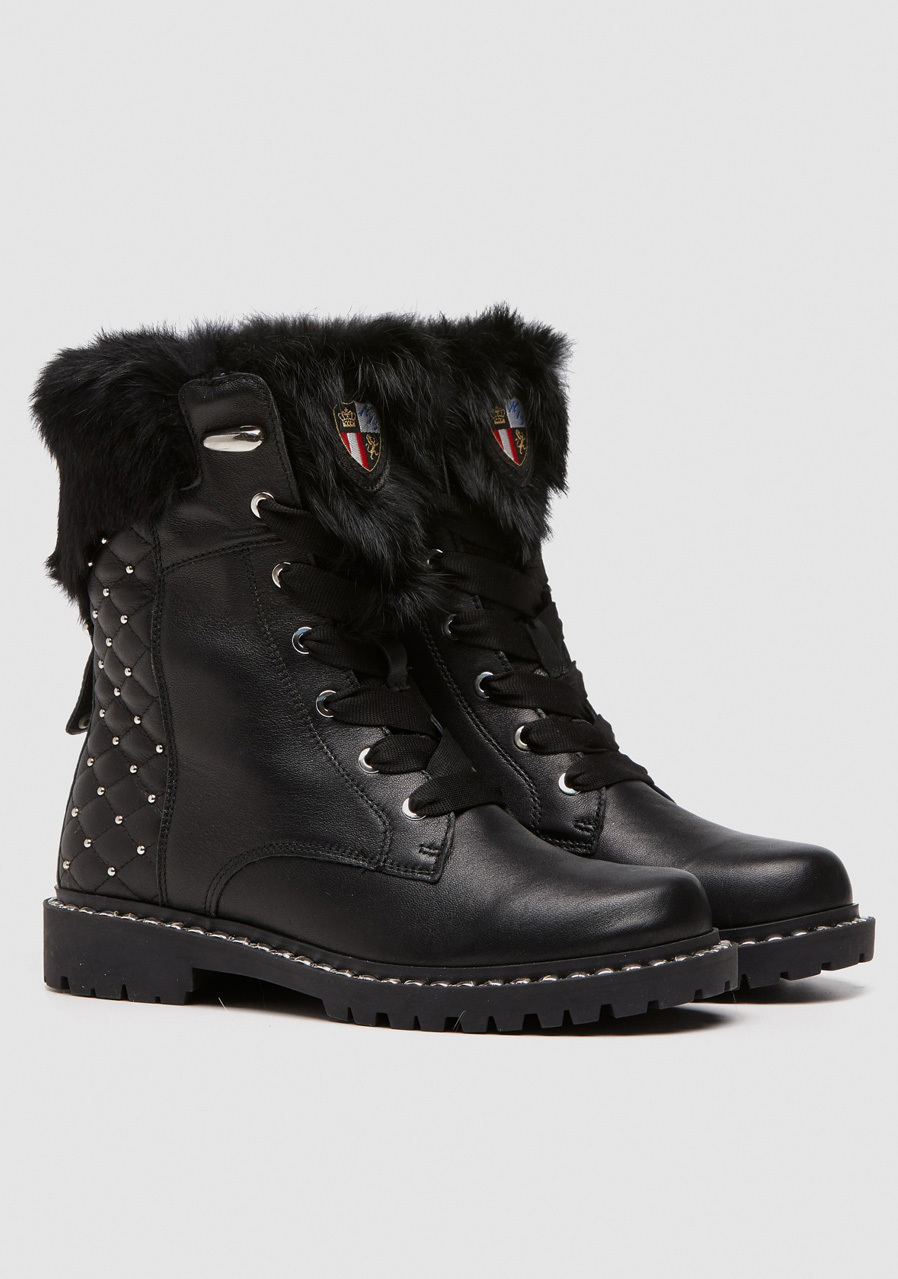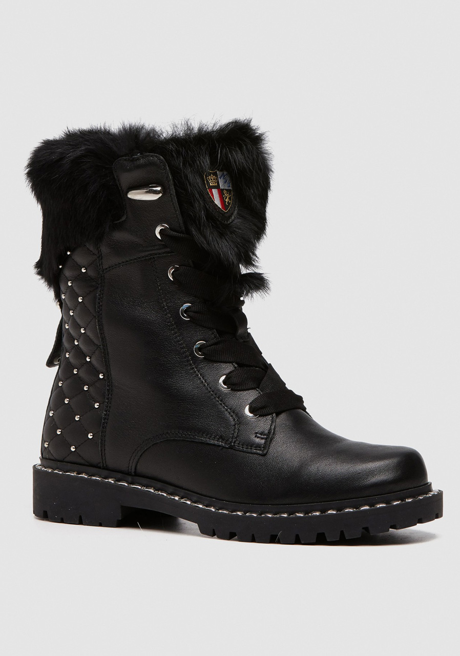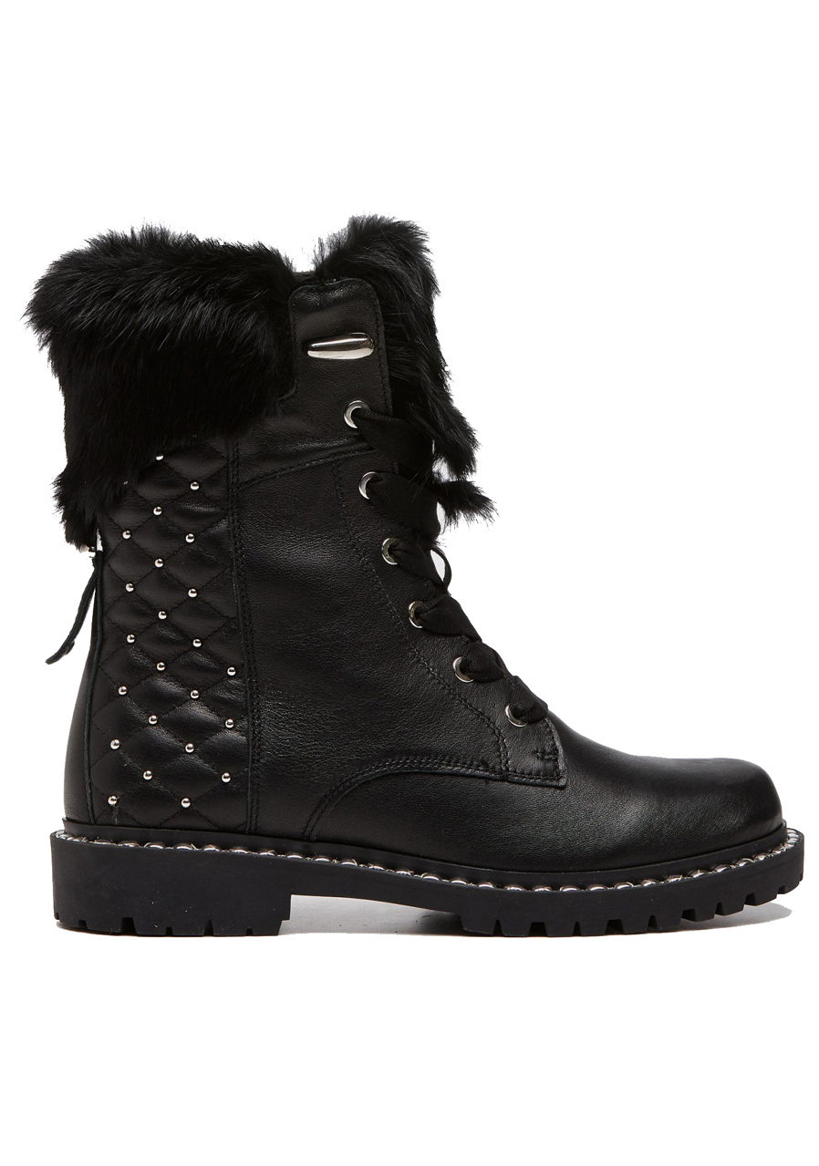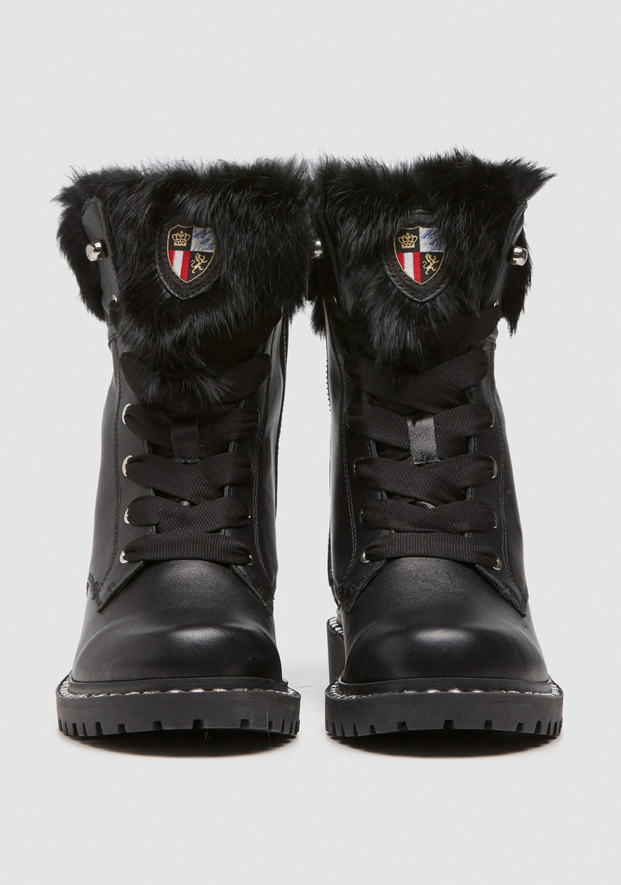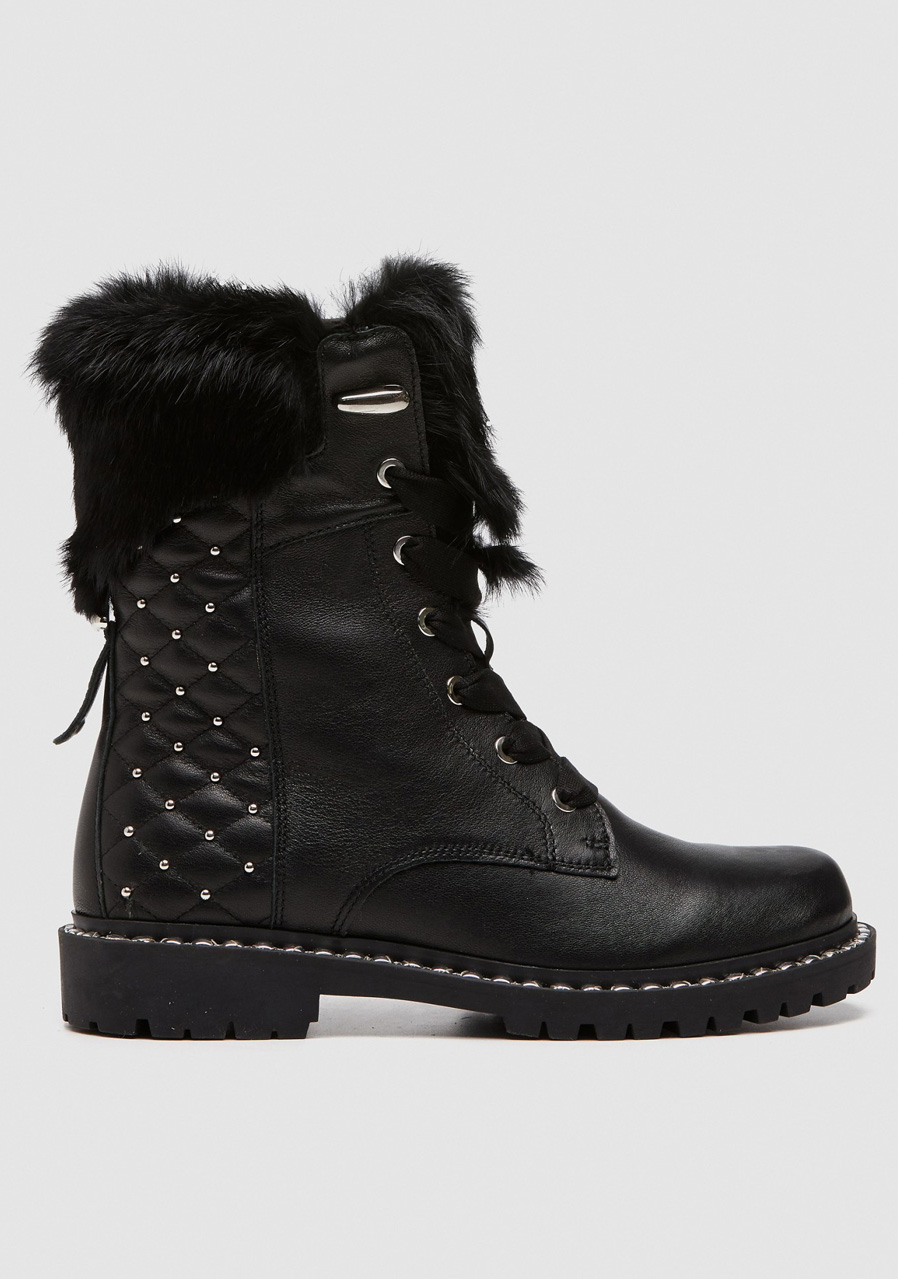 Elegantní černé kotníkové boty, které propojují praktičnost šněrování a zipu s luxusním vzhledem. Kvalitní kožený svršek je doplněn pravou kožešinou Lapin, která botám dodává jedinečný charakter a zároveň hřejivý komfort. Díky pevnému provedení a pohodlnému střihu jsou ideální volbou pro chladné dny ve městě i volnočasové nošení.