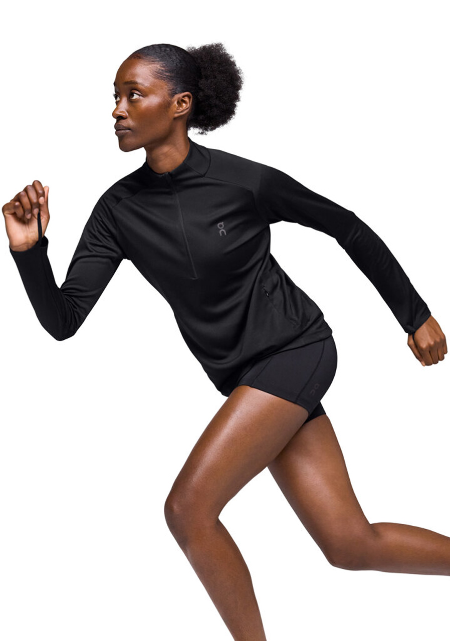 Dámská mikina On Running Climate Shirt v černém provedení je navržena pro trénink i volný čas v chladnějším počasí. Díky kombinaci technických materiálů s ventilačními zónami poskytuje optimální regulaci teploty – zahřeje, když je potřeba, a zároveň účinně odvádí vlhkost při vyšší aktivitě. Prodloužený střih a elastická konstrukce zajišťují volnost pohybu, zatímco minimalistický design s decentním logem On Running podtrhuje sportovní charakter.