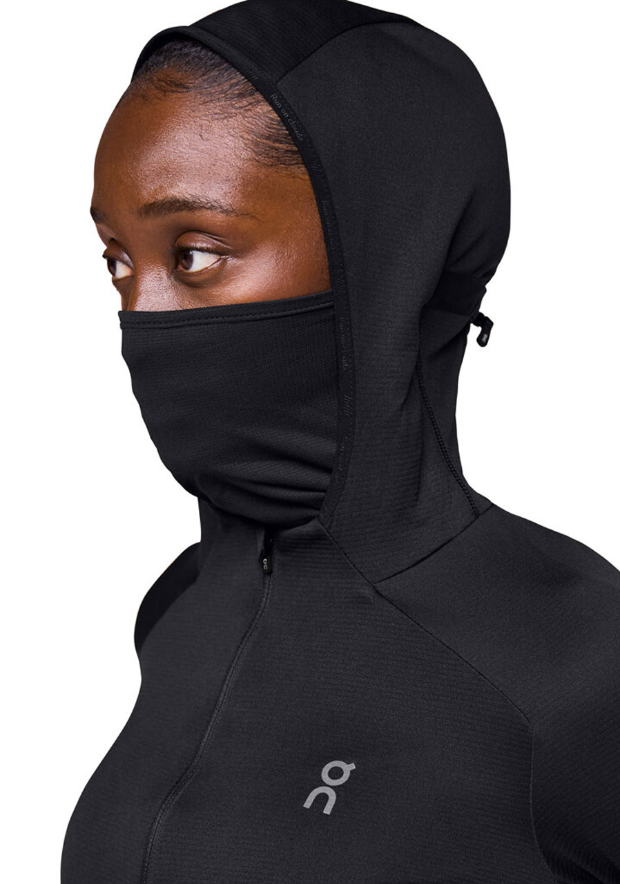 Detaily: celopropínací zip, kapuce, ventilační panely v klíčových zónách, ploché švy pro komfort, logo On Running na hrudi