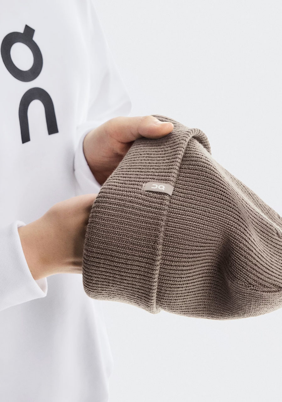 Detaily: jemný úplet, decentní logo On Running na lemu